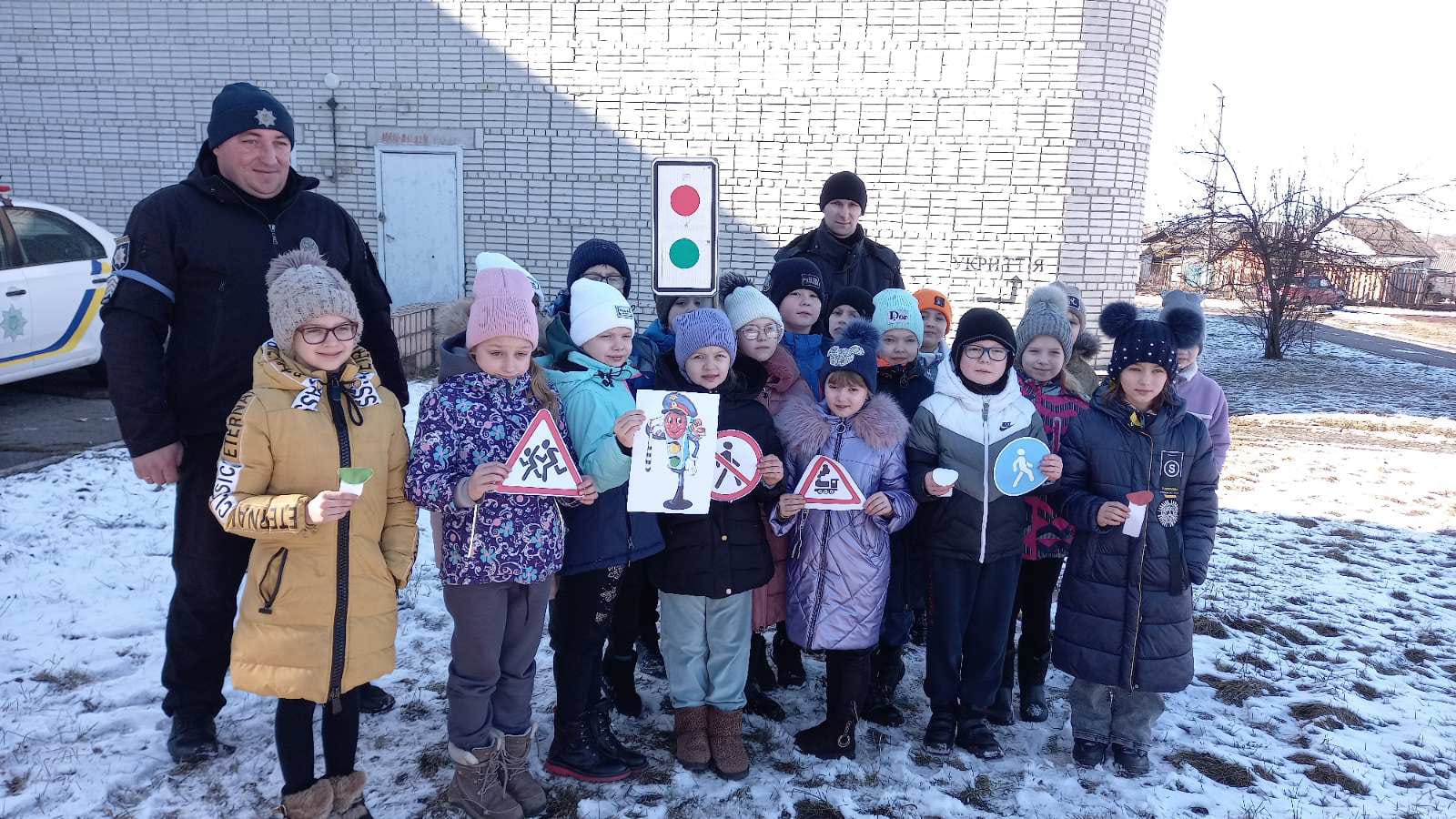 У дворі школи працівники сектору реагування патрульної поліції утворили імпровізоване перехрестя, на якому відпрацювали знання правил дорожнього руху, а також згадали дорожні знаки та їх значення. Крім того, правоохоронці наголосили на необхідності використання світлоповертаючих елементів або флікерів на своєму одязі у темну пору доби, аби водії завчасно могли помітити пішохода.