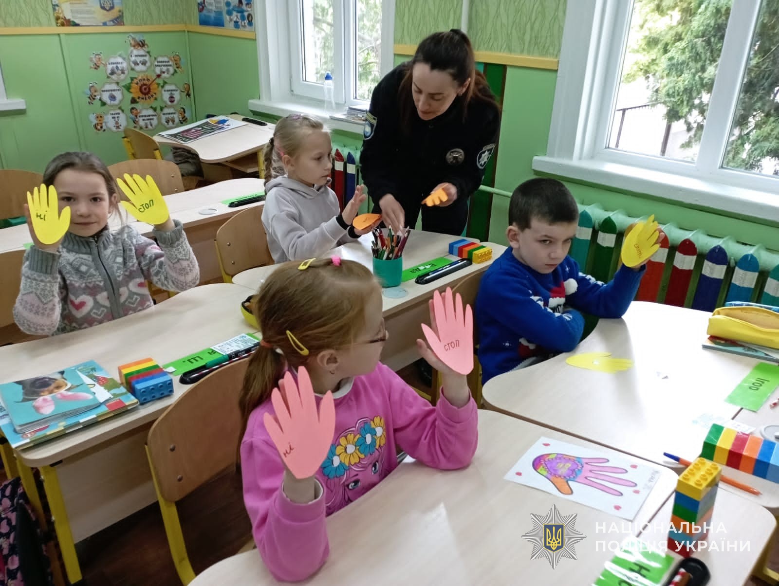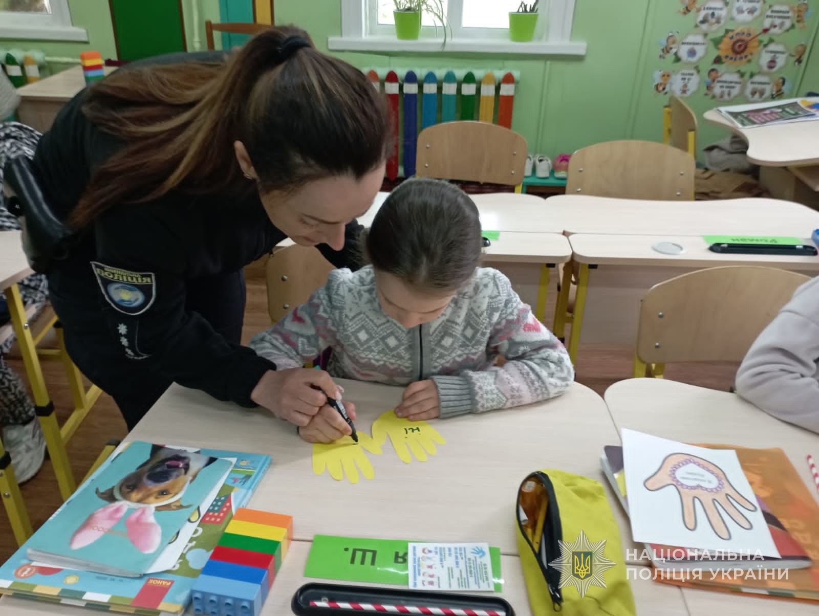 Після теоретичної частини, працівниця поліції разом з учнями створювали долоньки дружби та виховували в собі риси доброти.