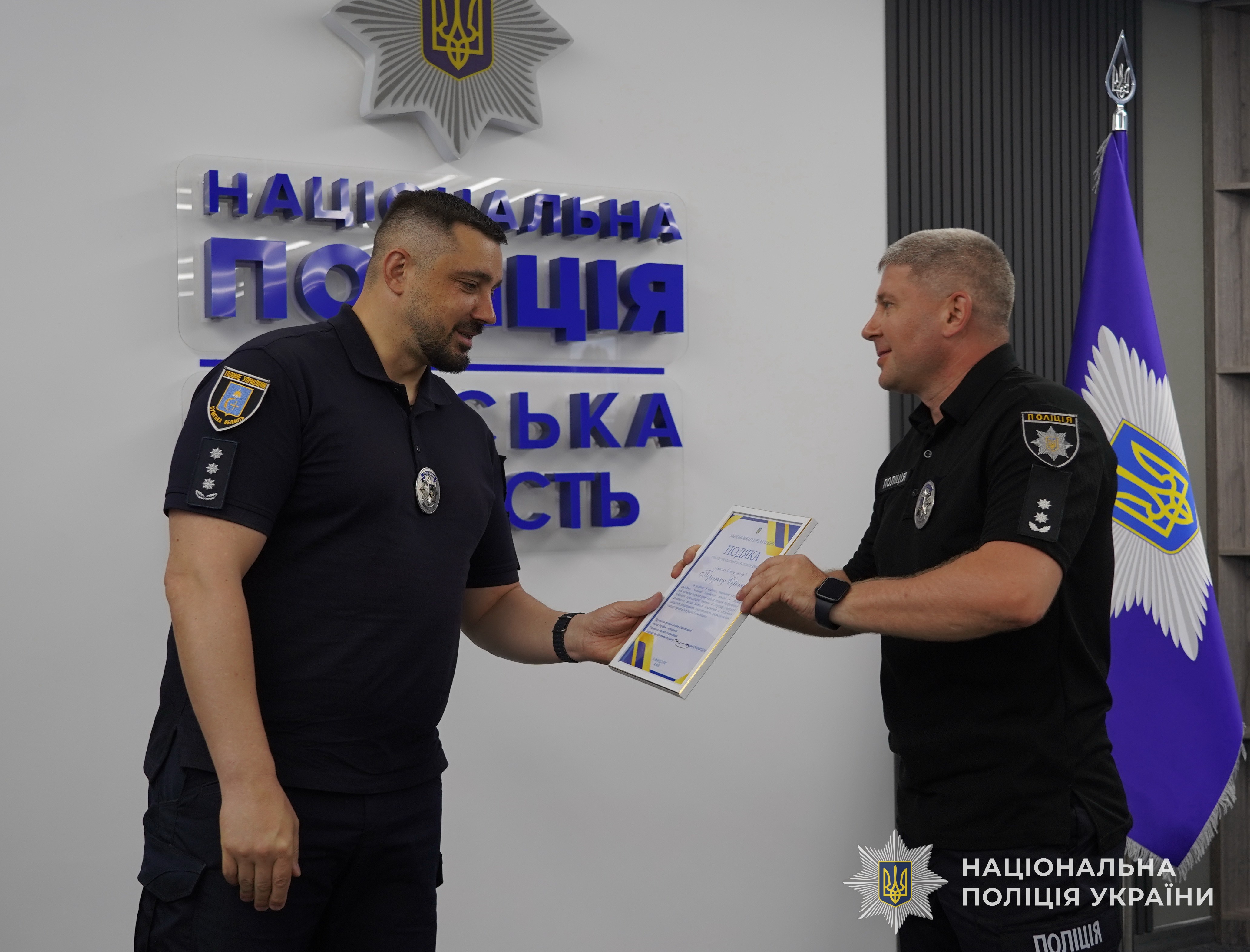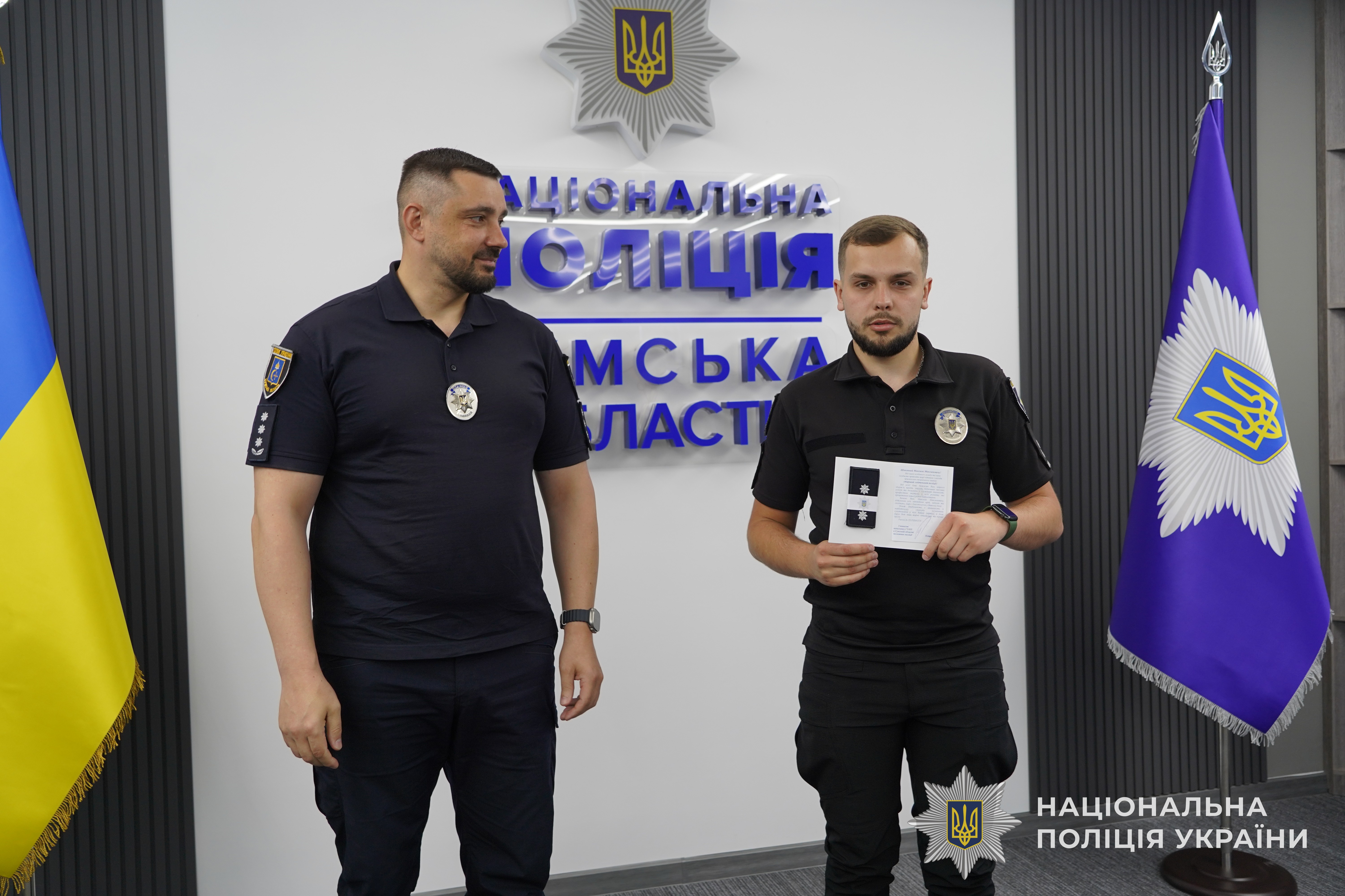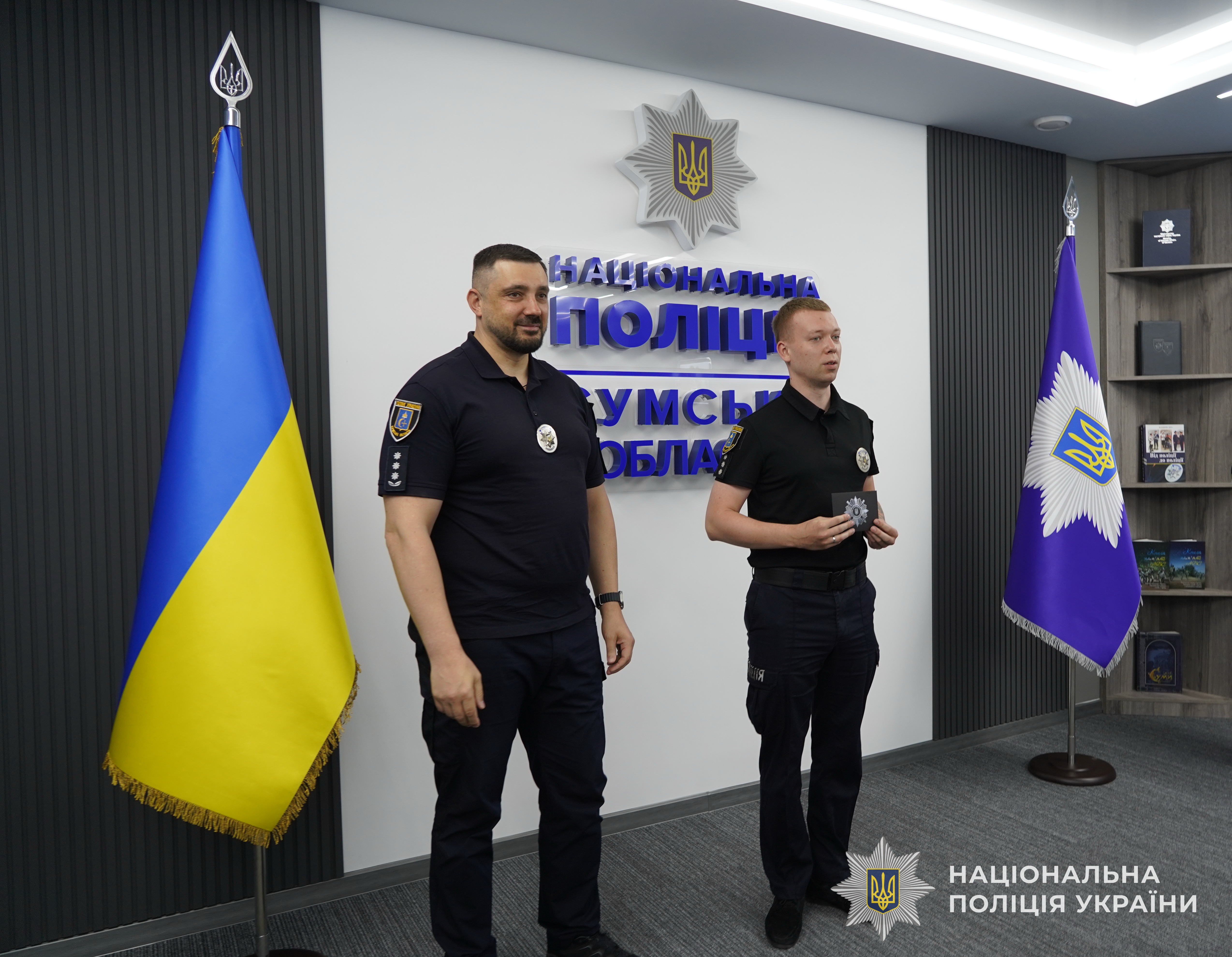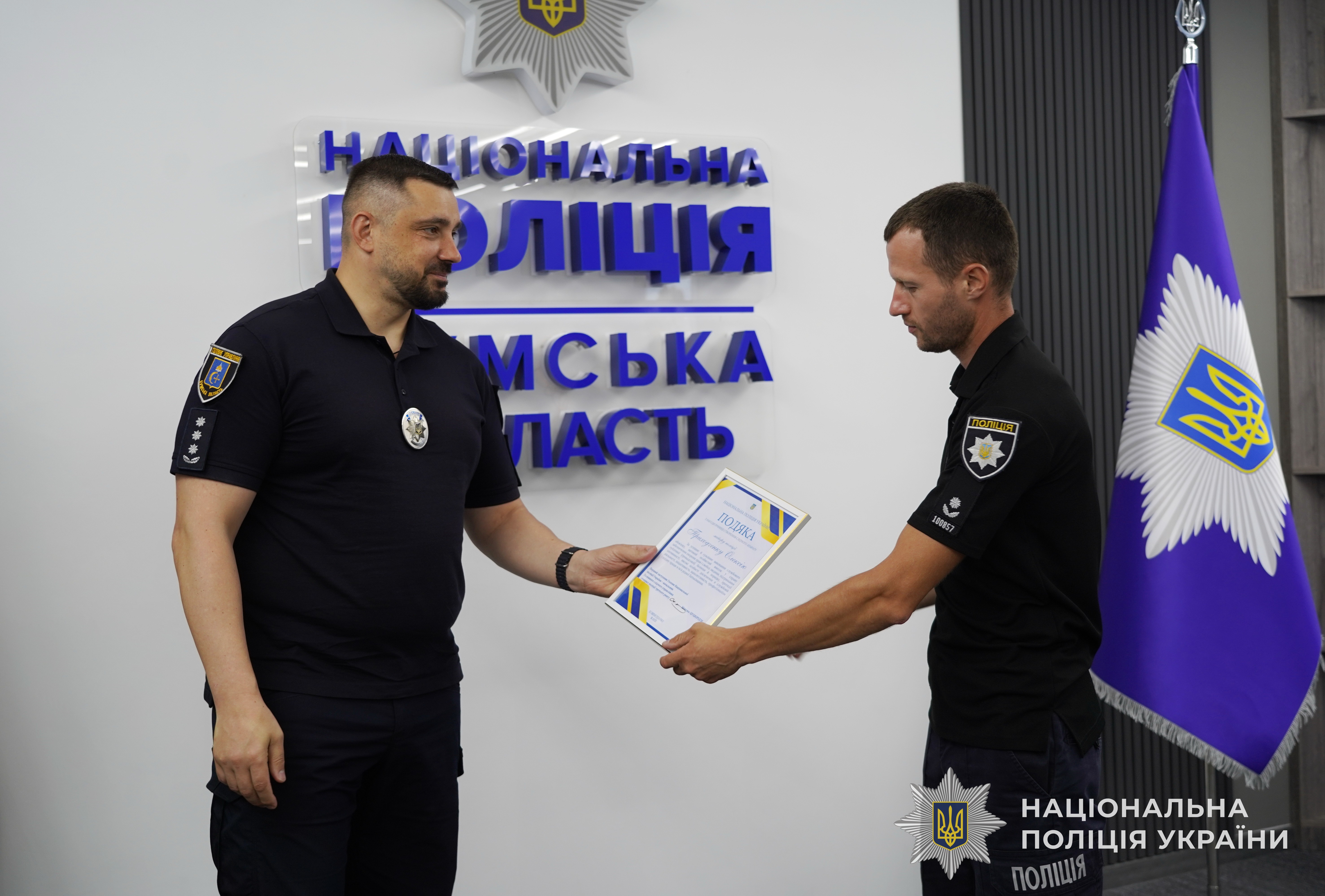 За успішне й сумлінне виконання службового обов’язку, відданість Присязі, високий професіоналізм, вагомий особистий внесок у справу забезпечення охорони прав та свобод людини, протидії злочинності, підтримання публічної безпеки і порядку, високі особисті досягнення в службовій діяльності та професійні здобутки, забезпечення ефективного виконання завдань і функцій поліції очільник поліції Сумщини вручив кращим працівникам подяки, цінні подарунки Національної поліції та чергові спеціальні звання.