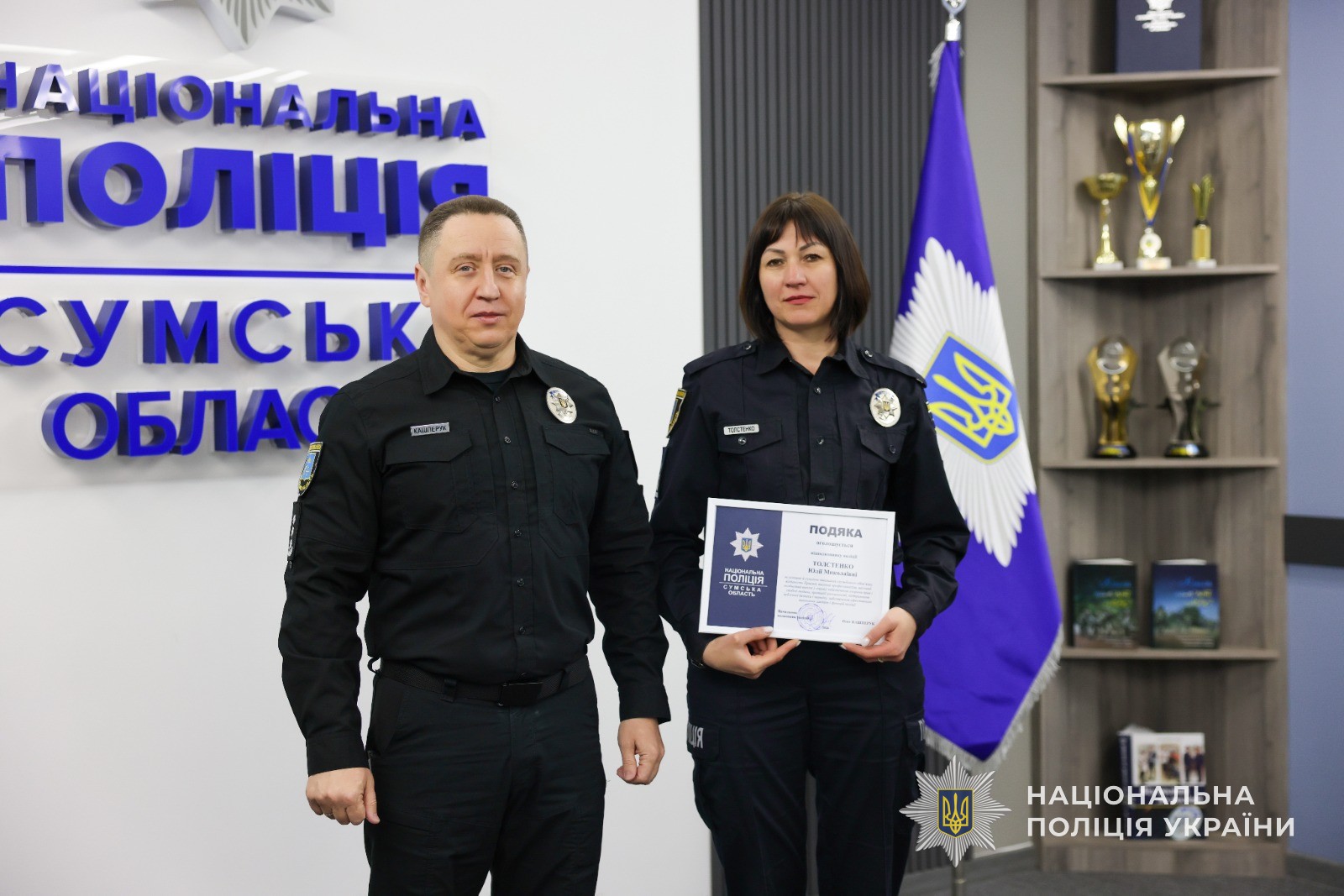 Окремих співробітників відзначено заохочувальними відзнаками Національної поліції України, а також подяками керівництва ГУНП за сумлінну службу, ініціативність і вагомий внесок у забезпечення законності та службової діяльності.