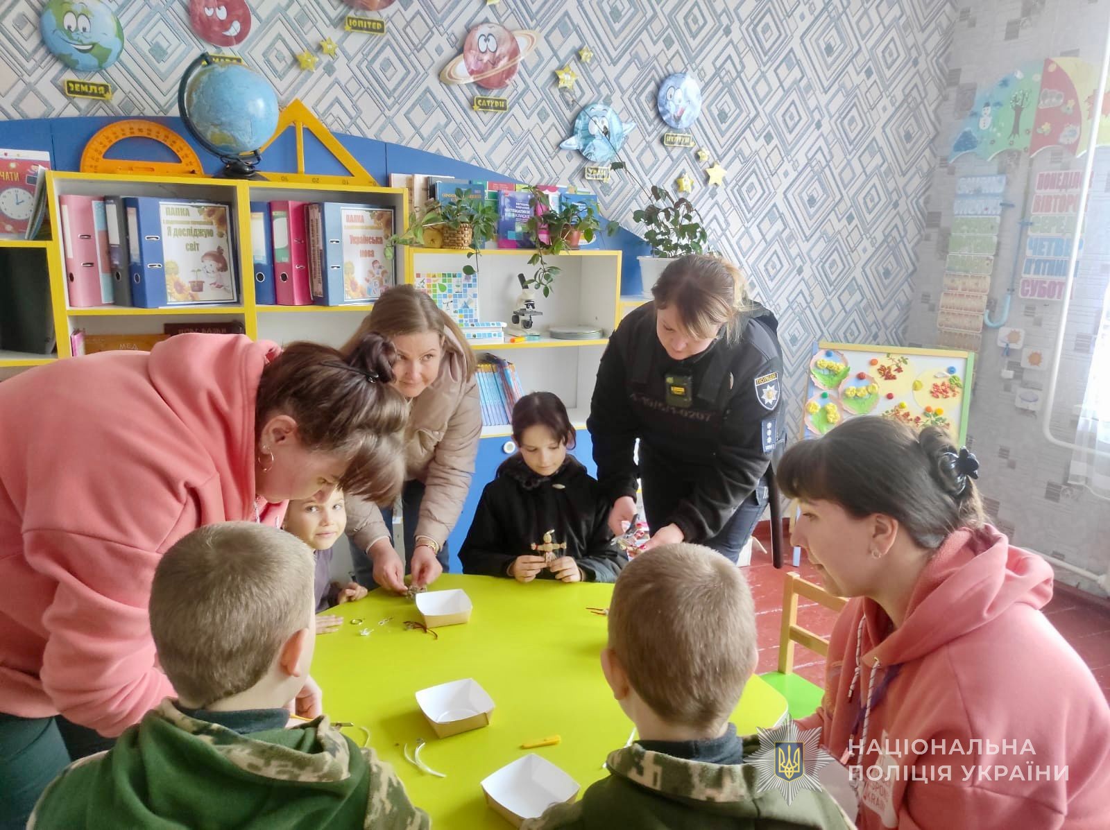 Цього разу поліцейська спільно з працівниками ГО «Сумське громадське коло» провели для учнів психологічний тренінг на тему «Правила поведінки в укритті», арттерапевтичне заняття «Я супергерой». Діти ознайомились з вправами, які допомагають подолати стрес. Потім учні спільно з поліцейською занурились у творчій процес та виготовляли ляльки-мотанки.