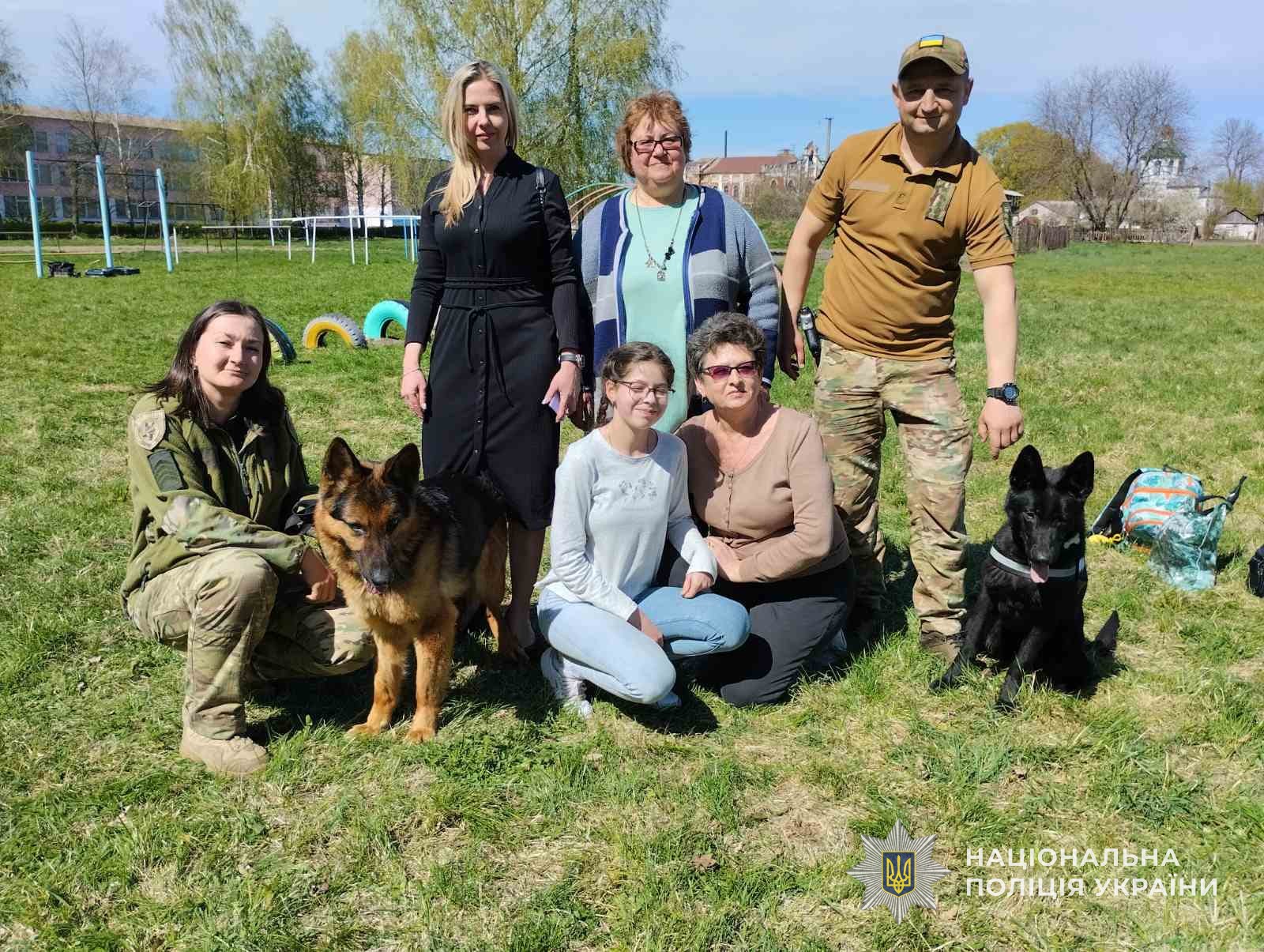 Інспектори кінологічної служби зі своїми помічниками показали учням вміння виконувати команди загального курсу дресирування, а також продемонстрували навички з проведення пошуку небезпечних предметів. Діти із захопленням спостерігали за собаками, які вправно виконували завдання кінологів.