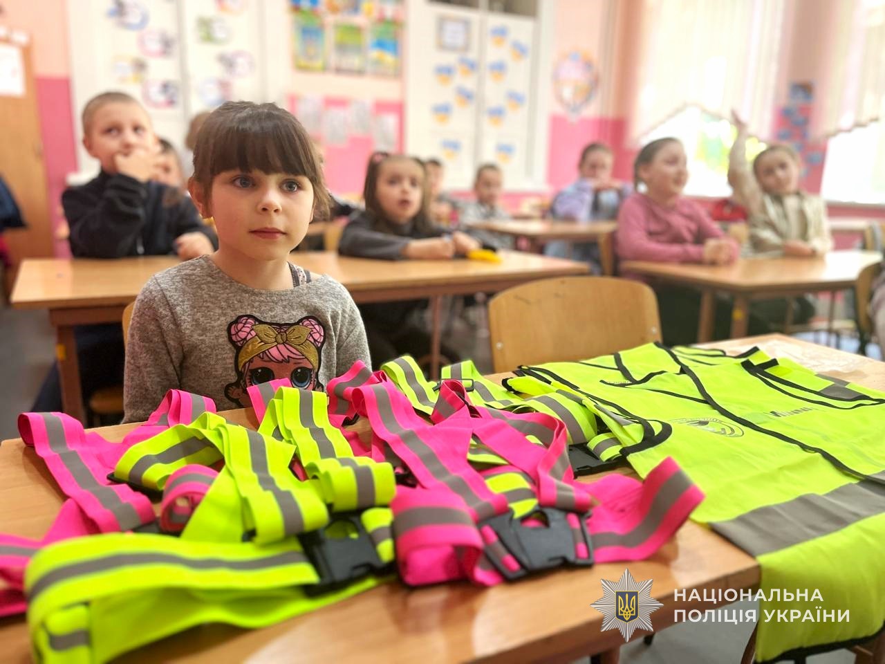 Особливу увагу інспектори приділили темі безпеки пішоходів у темну пору доби. Дітям пояснили, чому важливо носити світлий одяг і використовувати світловідбивні елементи. Учні із задоволенням приміряли жилети та отримали наліпки.