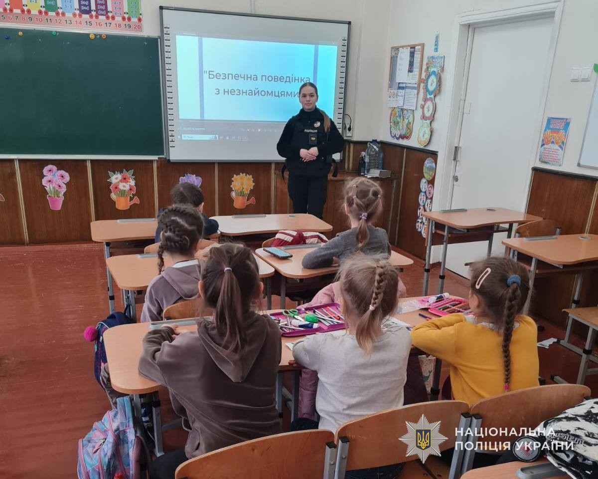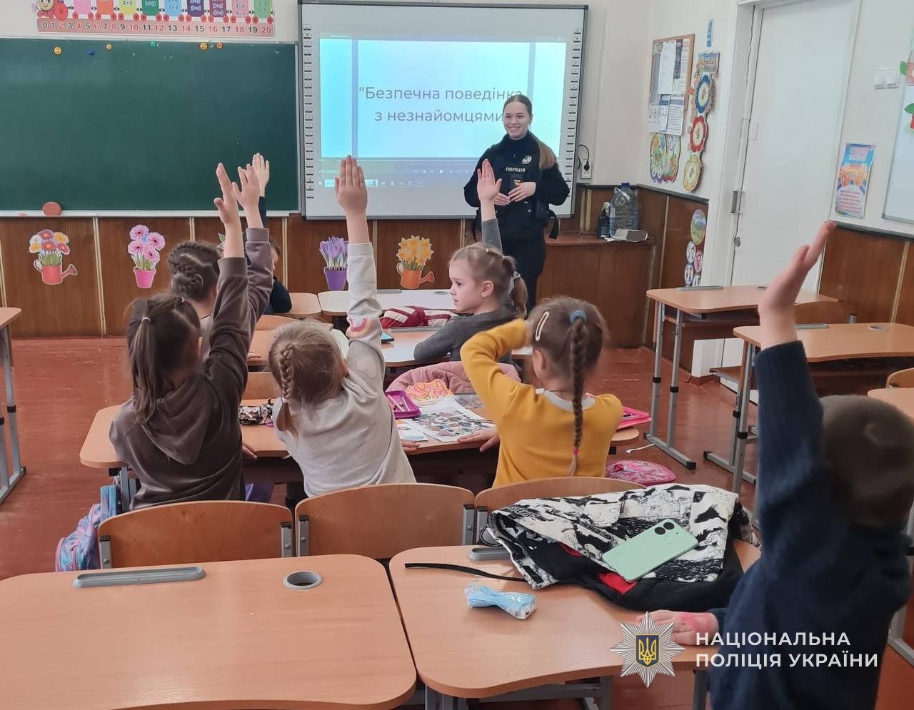 Щоб запобігти ситуаціям, які можуть бути небезпечні для дітей, поліцейська розповіла учням про те, як потрібно себе поводити з незнайомими людьми, та чому таке спілкування може бути небезпечним.