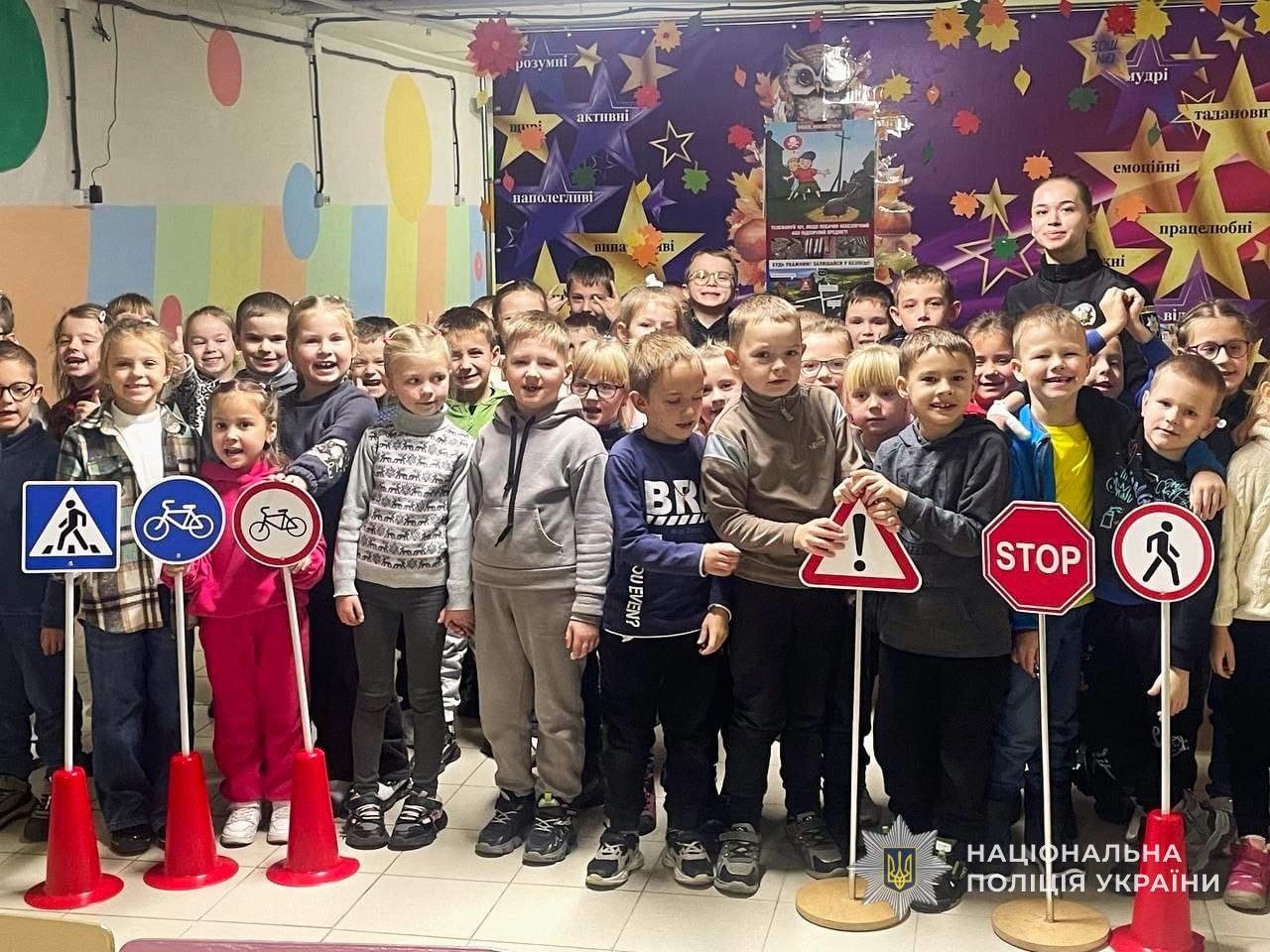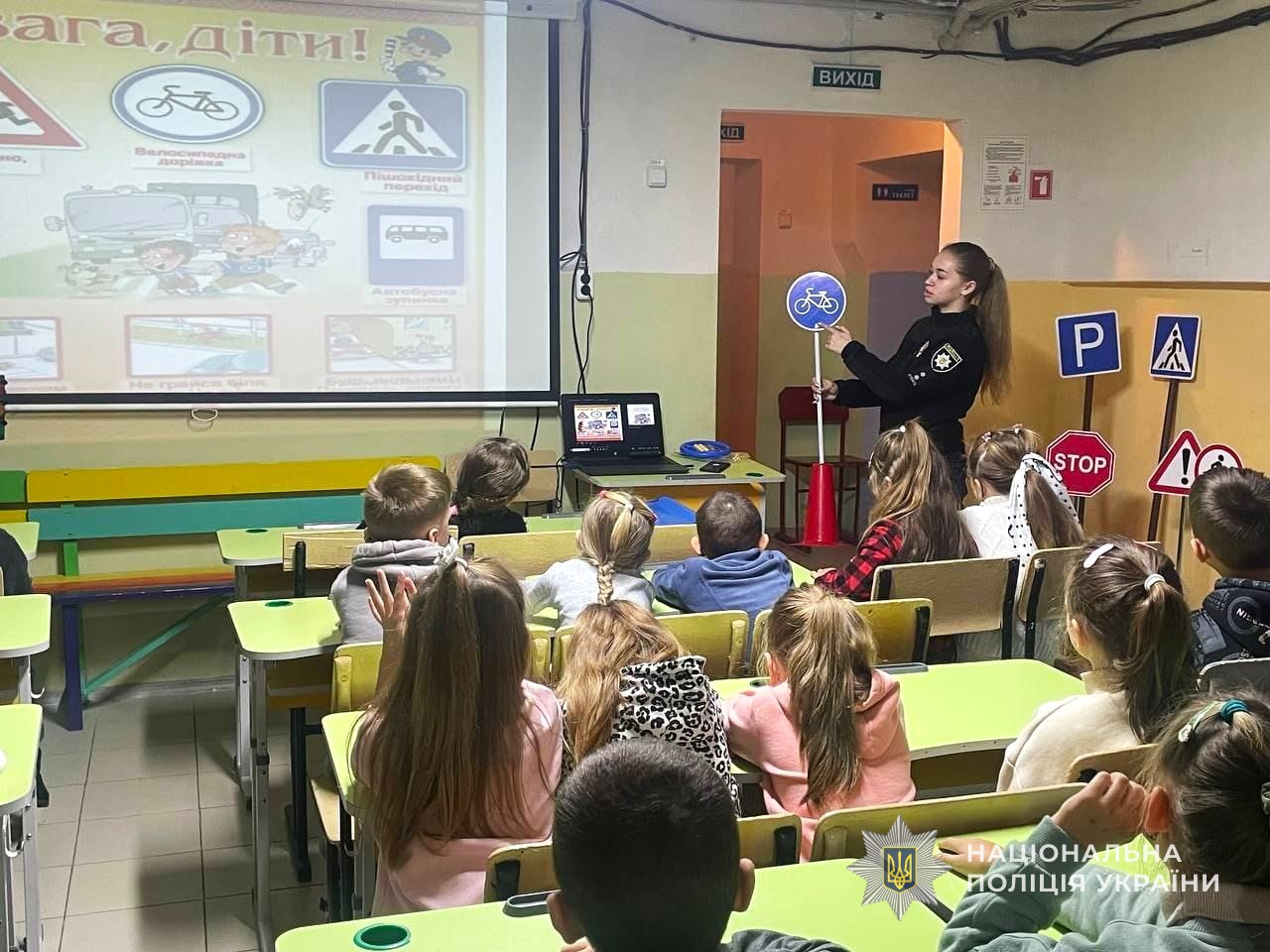 Під час заходу поліцейська пояснила школярам про основні правила поведінки під час руху до школи та додому. Також звернула увагу на те, що йти до школи необхідно тільки по тротуарах дотримуючись правої сторони, а дорогу потрібно переходити без метушні та тільки у відведених для цього місцях.
