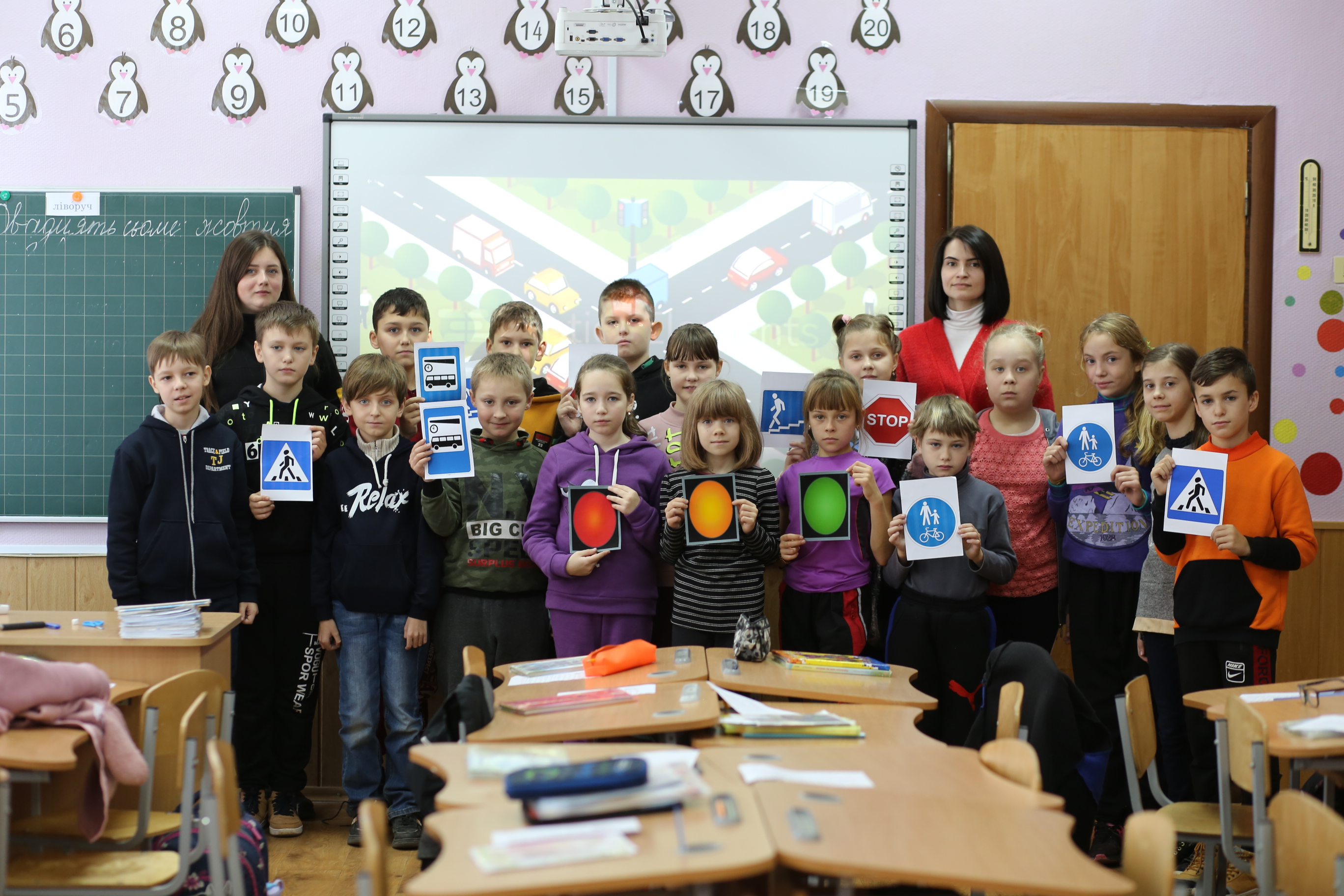 До розмови приєдналася й класний керівник учнів Марина Забіяка, яка додала, що вони з дітки вже знають деякі Правила дорожнього руху та як в темну пору доби потрібно себе виділити, аби водій транспортного засобу міг помітити пішохода.