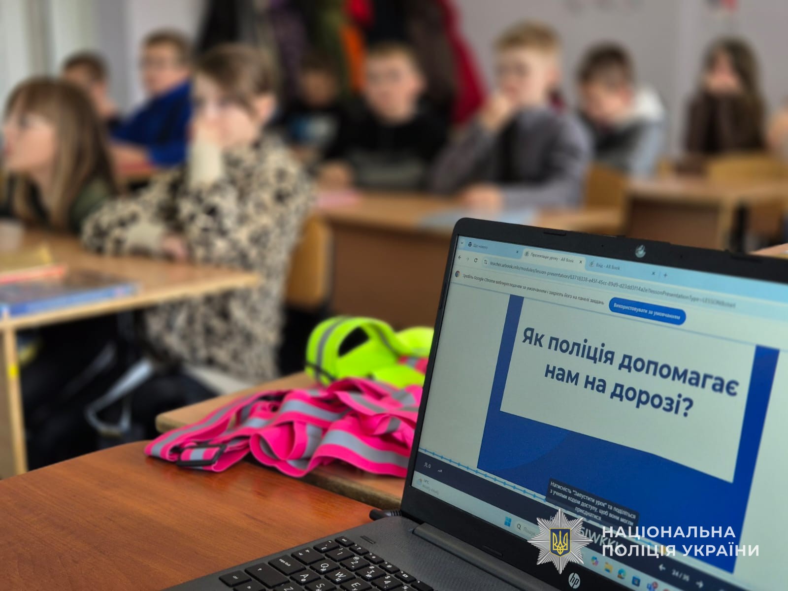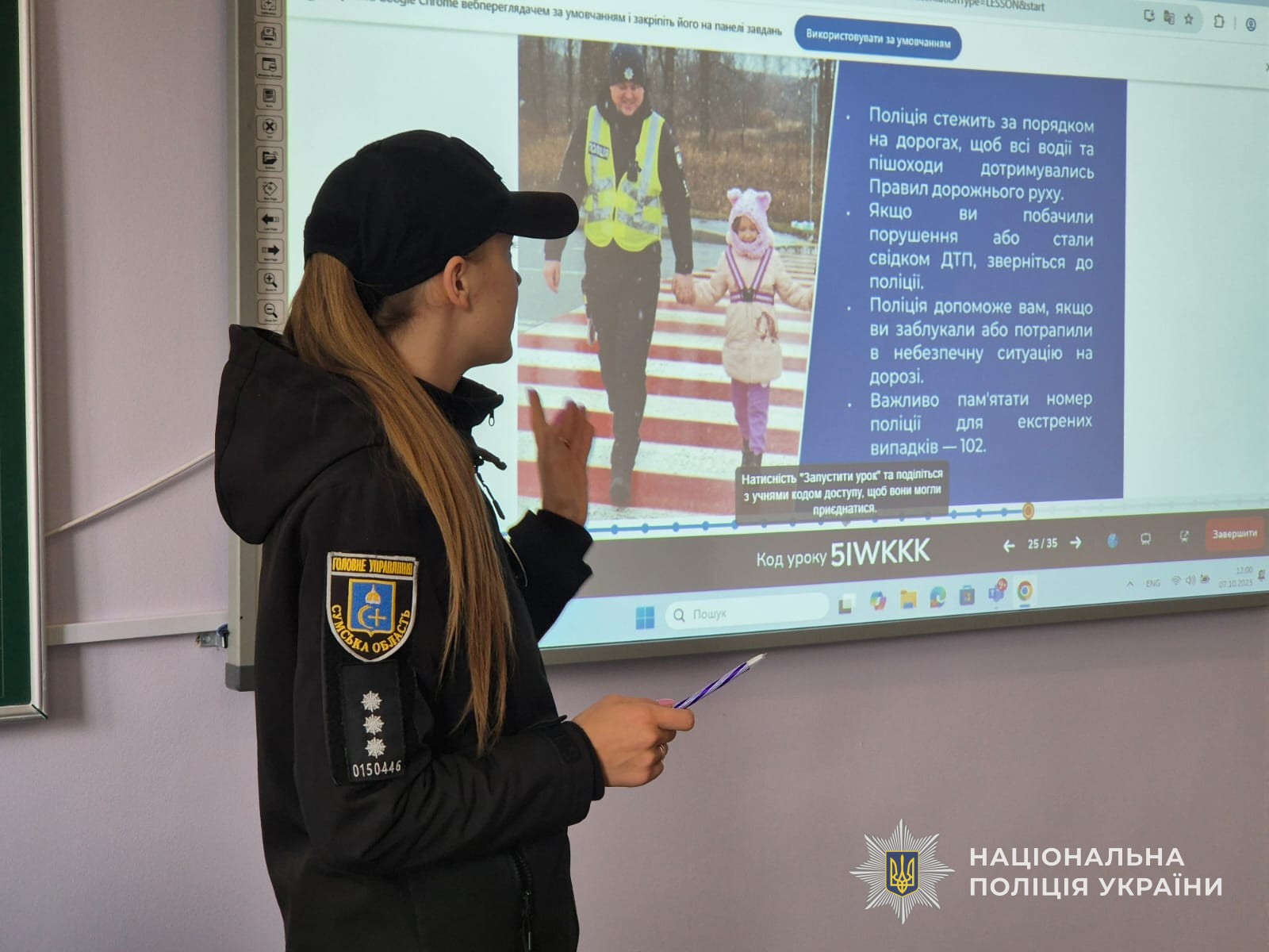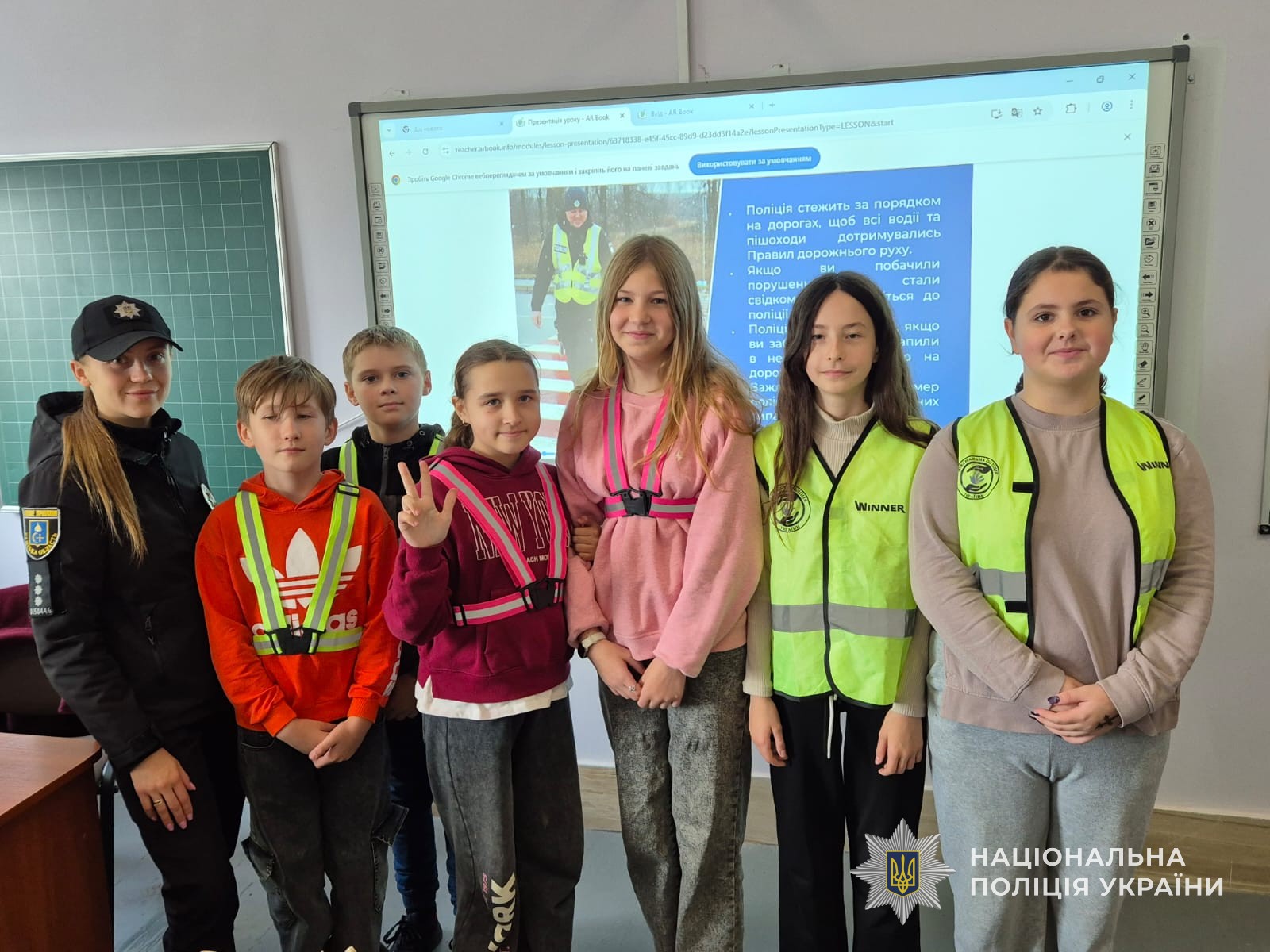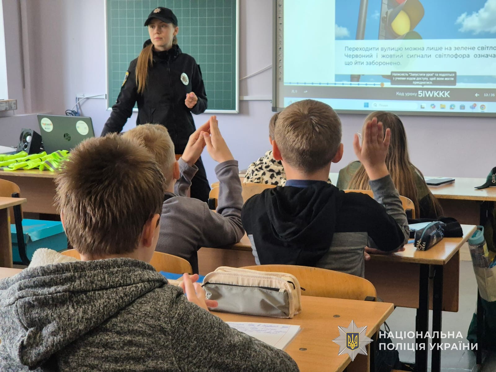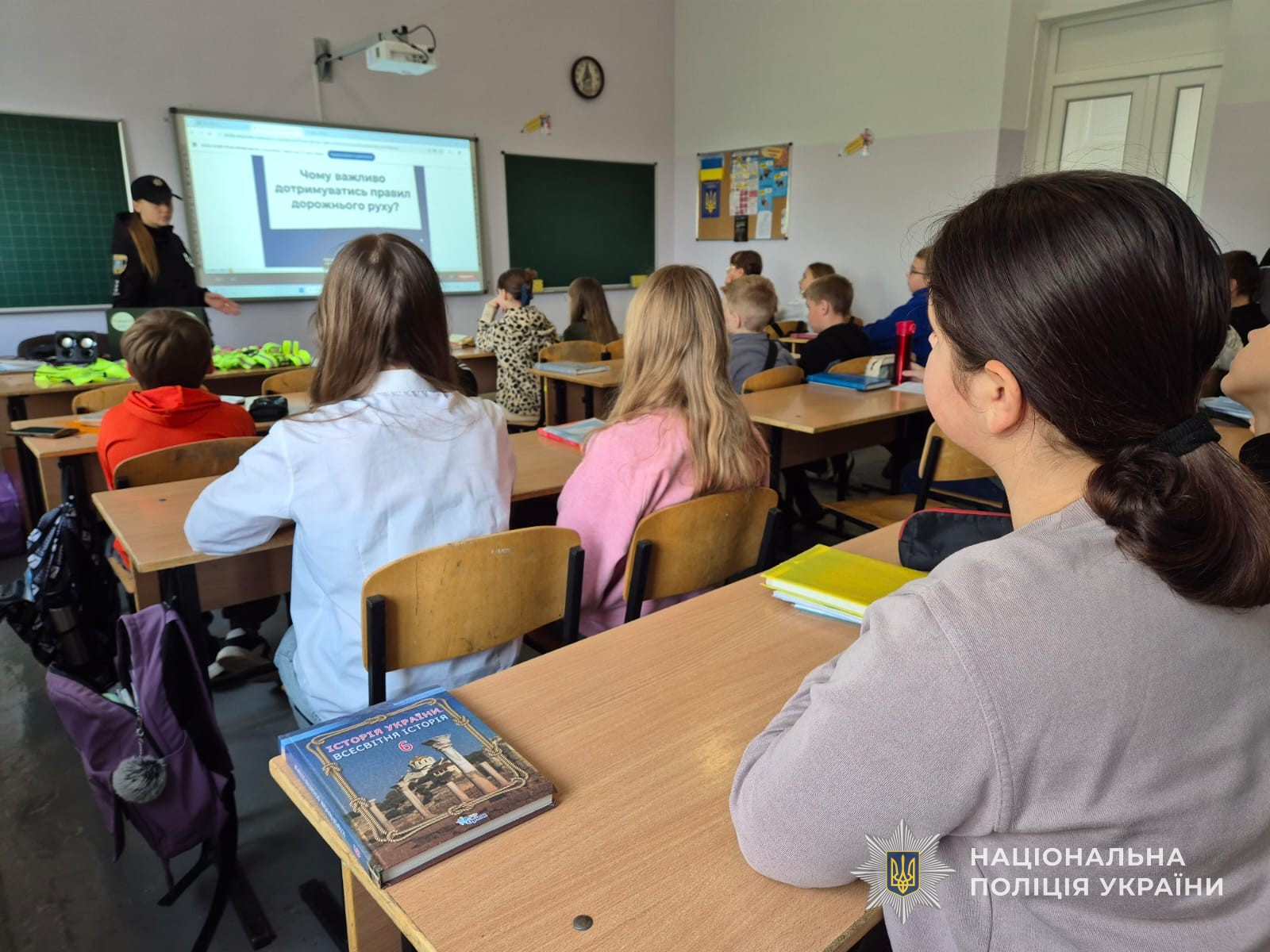 Щоб доступно пояснити правила дорожнього руху учням шостого класу, поліцейські продемонстрували презентацію під назвою «Знай правила дорожнього руху — збережи своє життя». Під час перегляду слайдів діти дізналися, яких правил повинні дотримуватися пішоходи та чому це важливо.