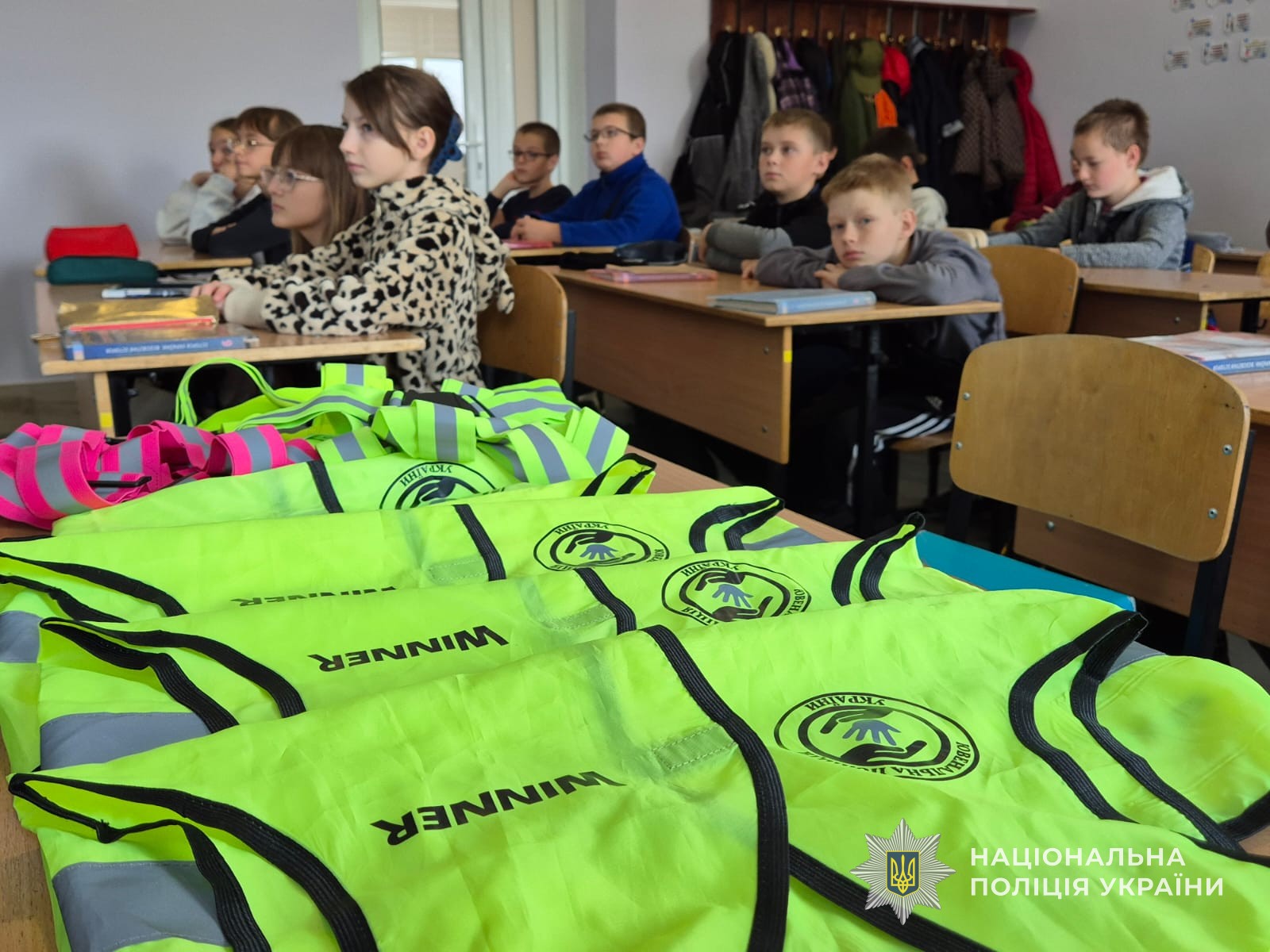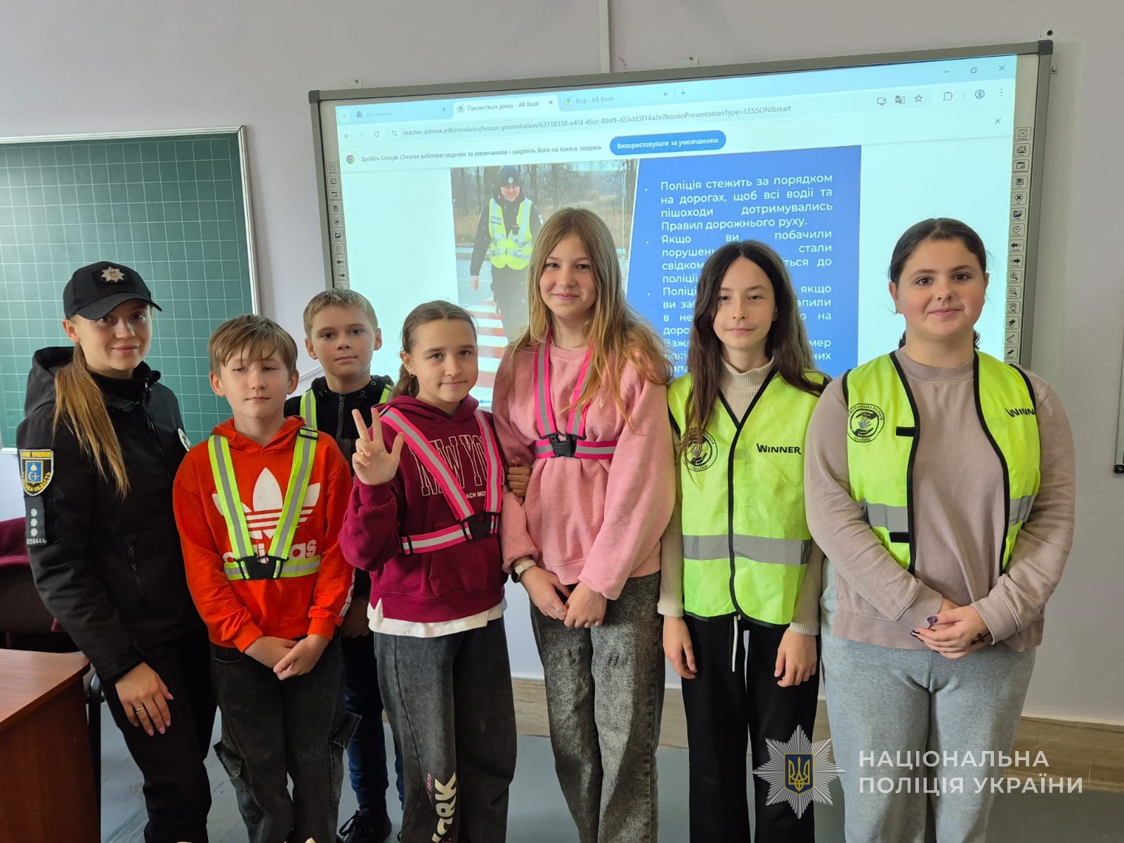 Правоохоронці також показали спеціальні світловідбивальні жилети, які роблять пішоходів помітнішими в темну пору доби. Дітям пояснили, що завдяки таким елементам водії можуть заздалегідь побачити людину на дорозі й вчасно зреагувати.