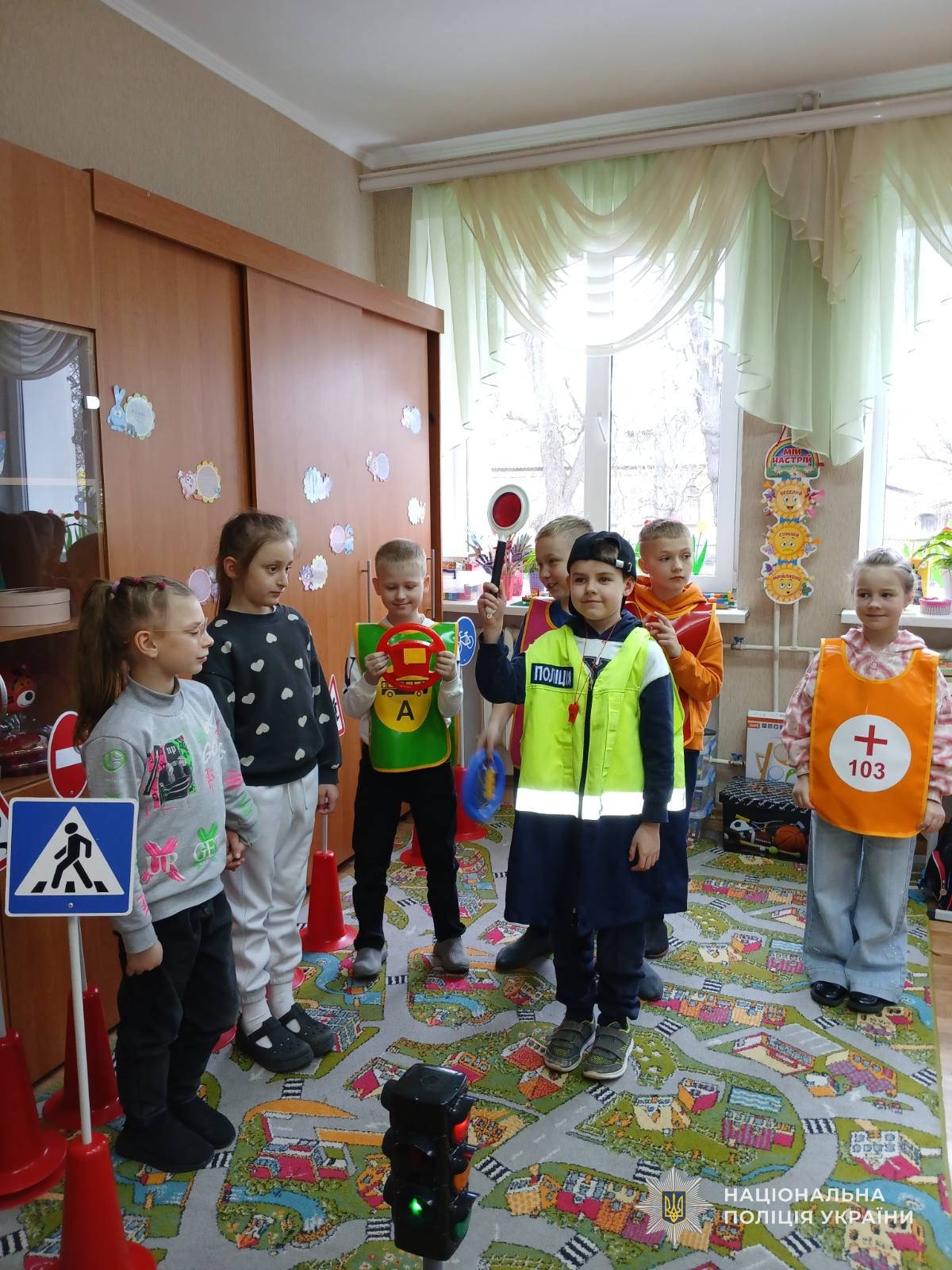 Під час зустрічі поліцейські у доступній та цікавій формі нагадали дітям основні правила дорожнього руху для пішоходів. Щоб краще засвоїти важливу інформацію, заняття провели у форматі інтерактивної гри.