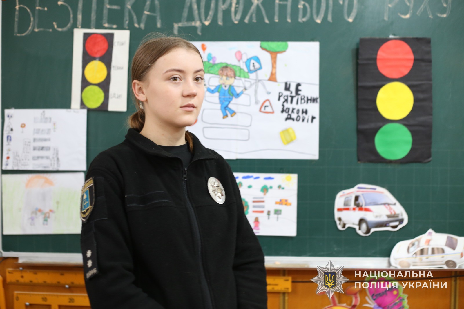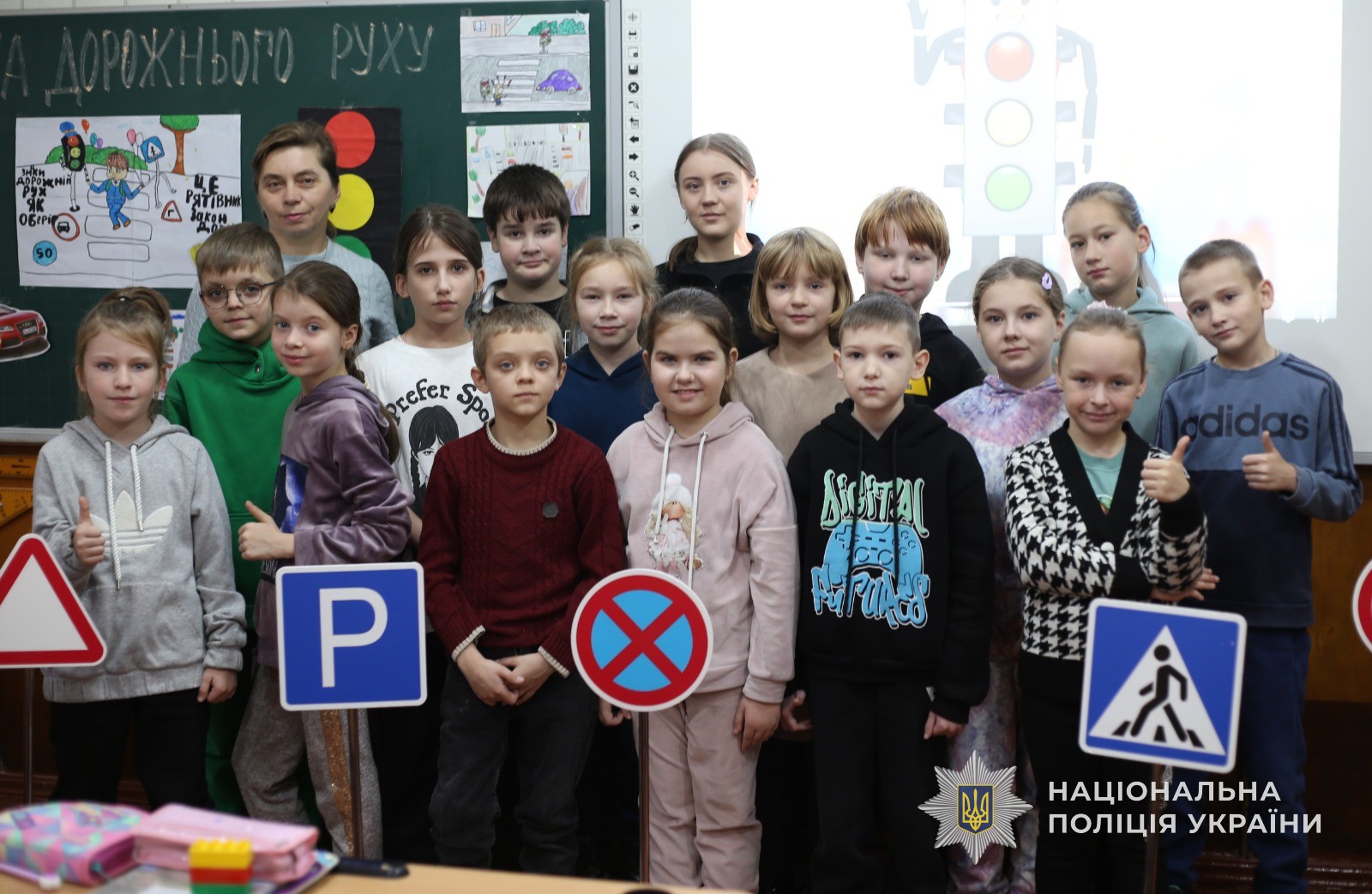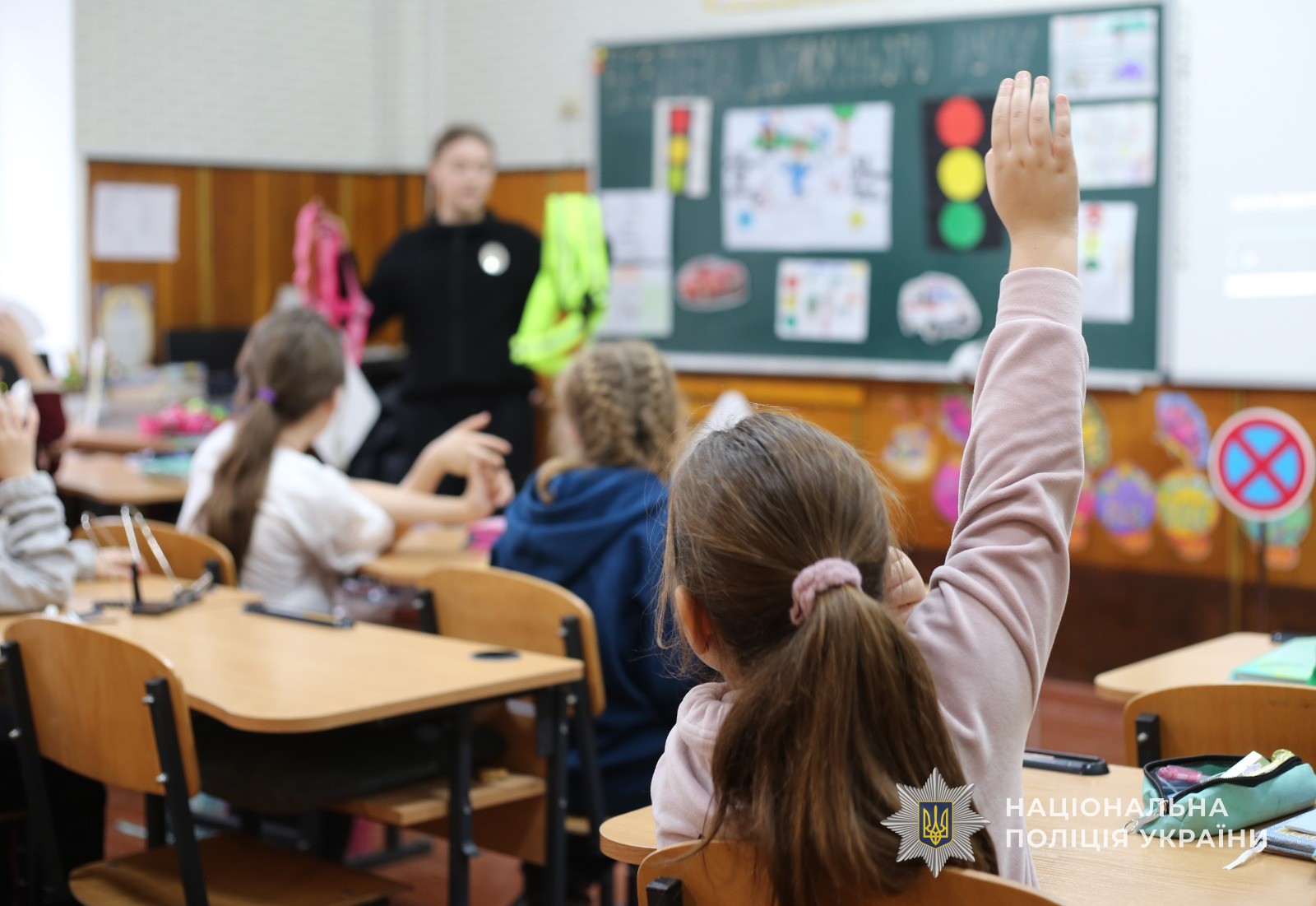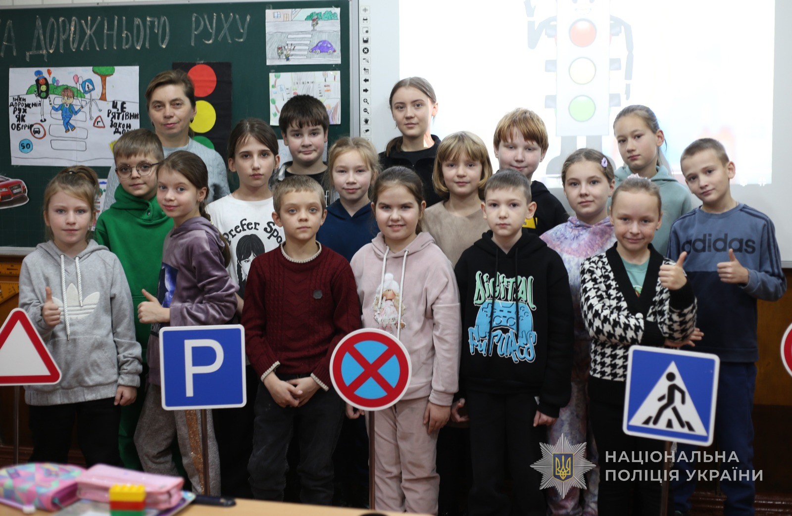 Також, інспекторка продемонструвала жилети, за допомогою яких можна себе позначити, аби стати помітними в темряві для водіїв. Далі всі бажаючи мали змогу їх приміряти. Окрім того, у формі діалогу співробітник поліції обговорила з хлопчиками та дівчатками, де та як правильно переходити дорогу та у формі гри перевірила дітей, як вони знають правила дорожнього руху. В результаті всі учні показали відмінні знання.