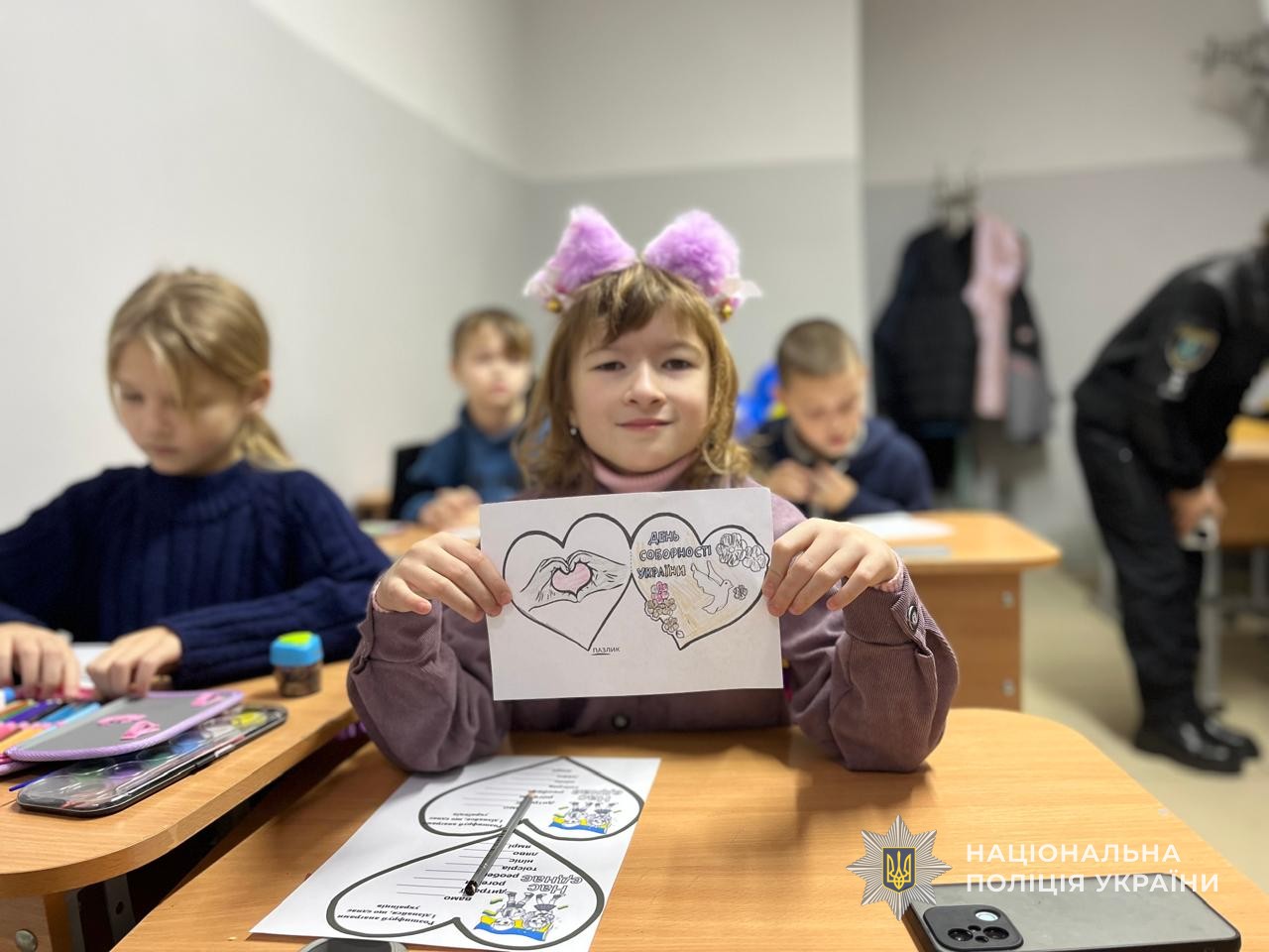 Особливістю заходу став інтерактивний формат. Правоохоронці не лише розповідали про символи, а й вели діалог із дітьми, обговорюючи важливі аспекти патріотизму. Учні також мали можливість продемонструвати свою творчість, розмальовуючи патріотичні листівки. Усі присутні отримали велике задоволення від процесу, а роботи дітей стали справжнім відображенням їхнього бачення української символіки.