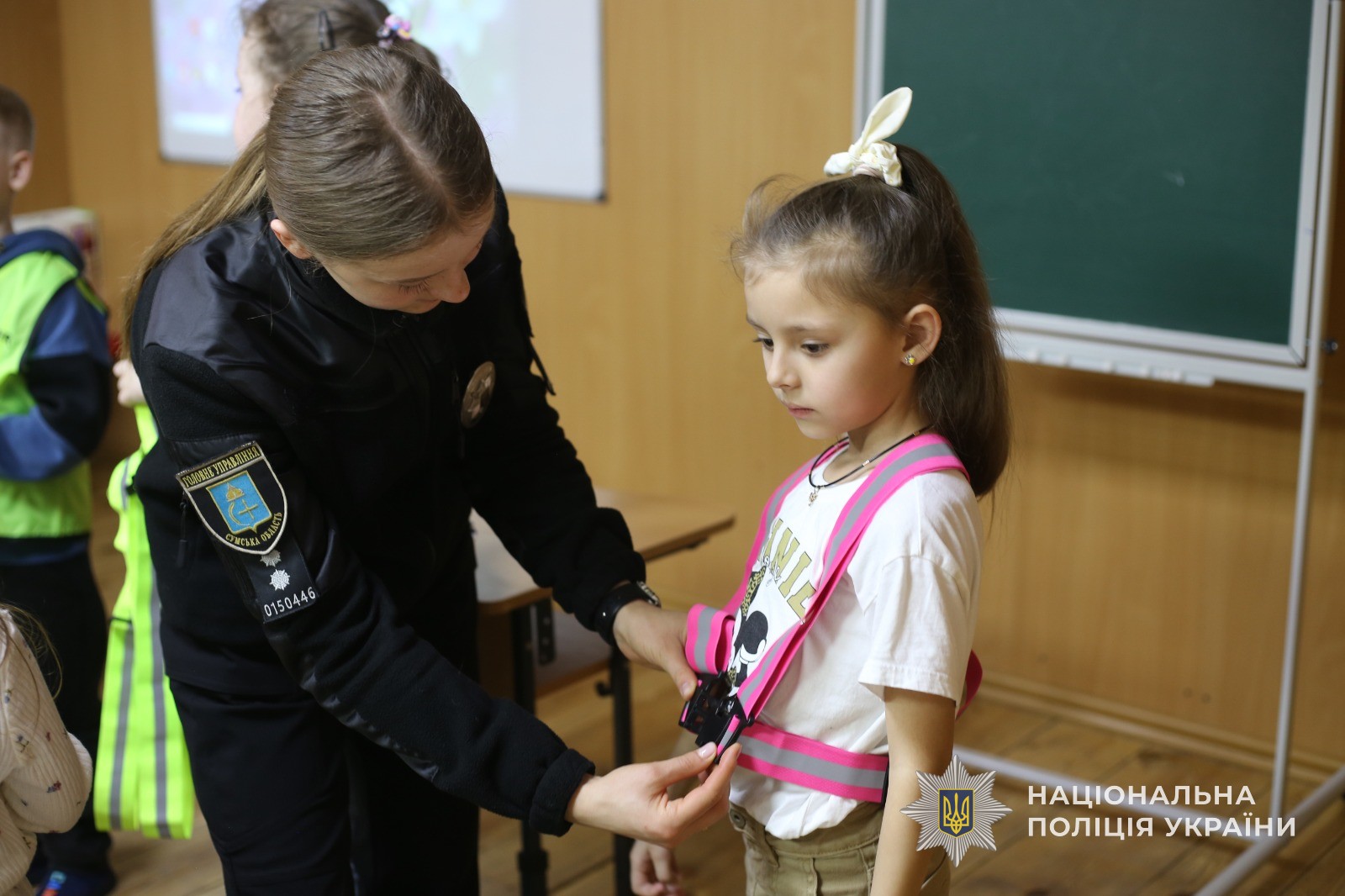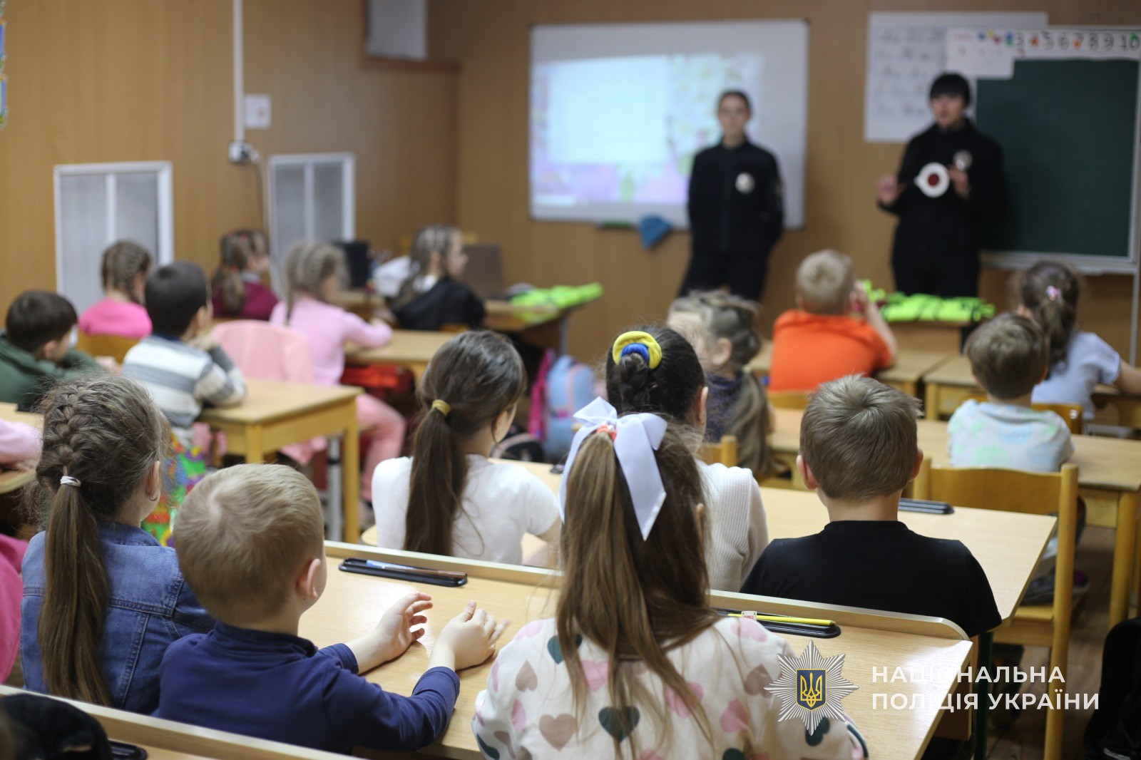 Аби зробити заняття ще цікавішим і доступнішим для малечі, співробітники поліції продемонстрували тематичний мультфільм, а також розповіли про важливість носіння світловідбивальних елементів у темну пору доби. Діти мали змогу не лише побачити спеціальні жилети, а й приміряти їх.
