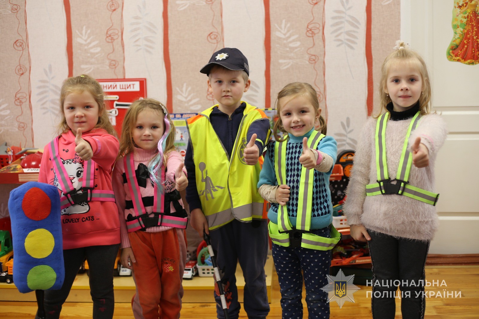 Вчора правоохоронці завітали до одного з дошкільних закладів міста та розповіли малечі про правила безпечної поведінки на дорозі та роздали світлоповертаючи браслети.