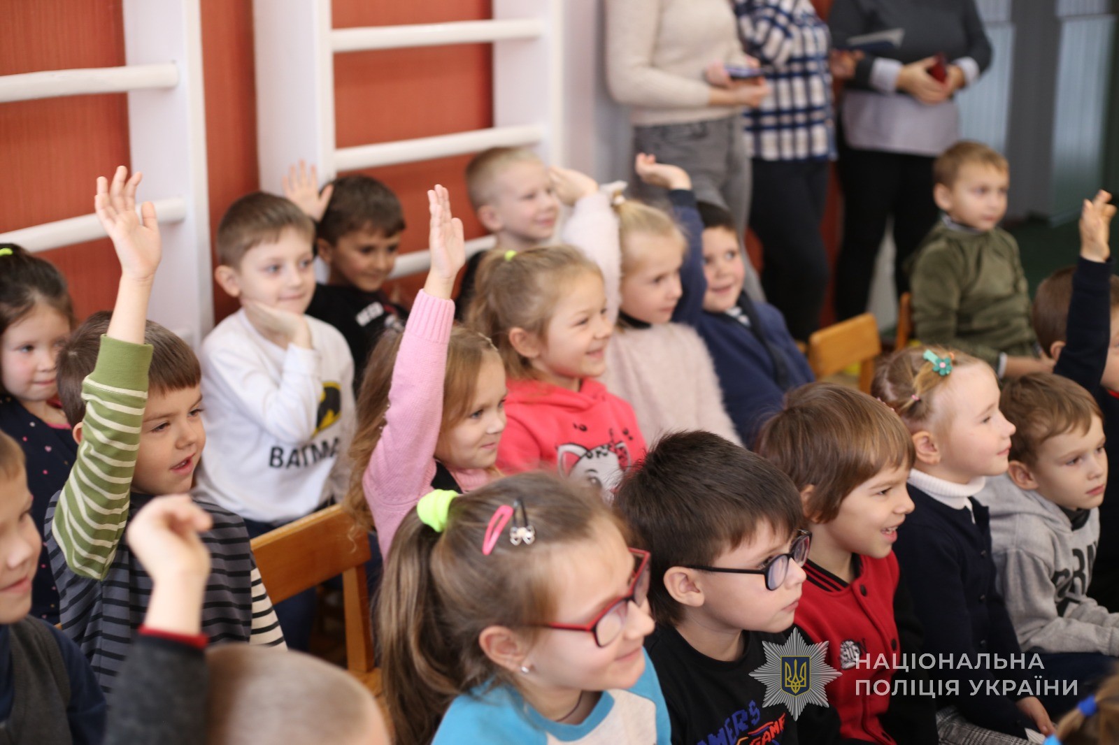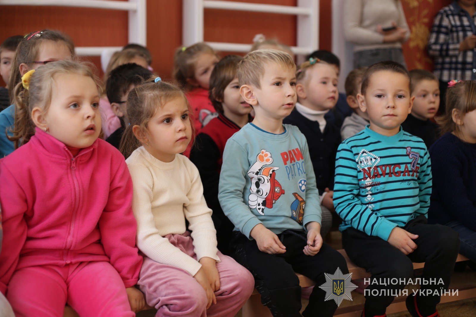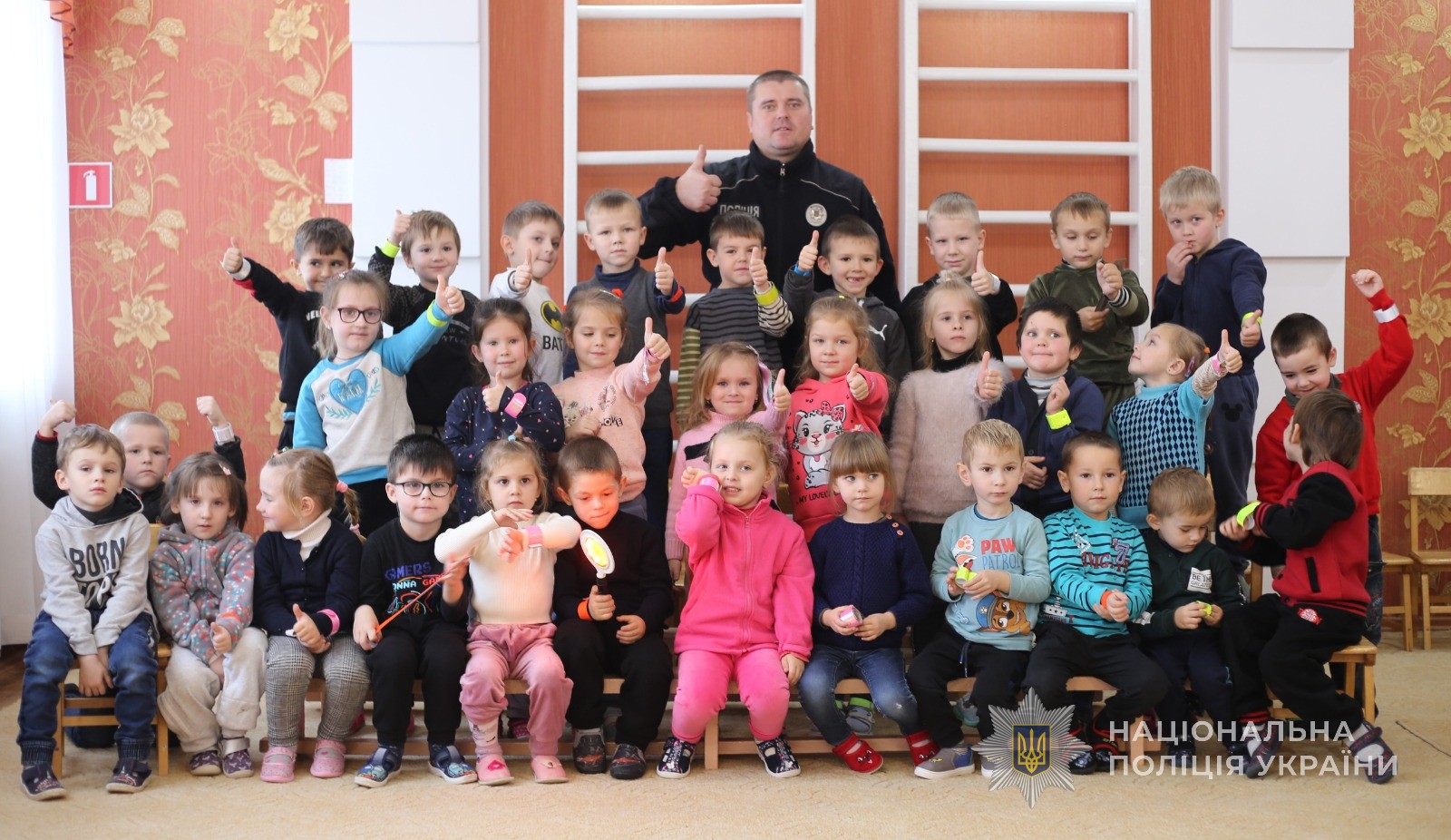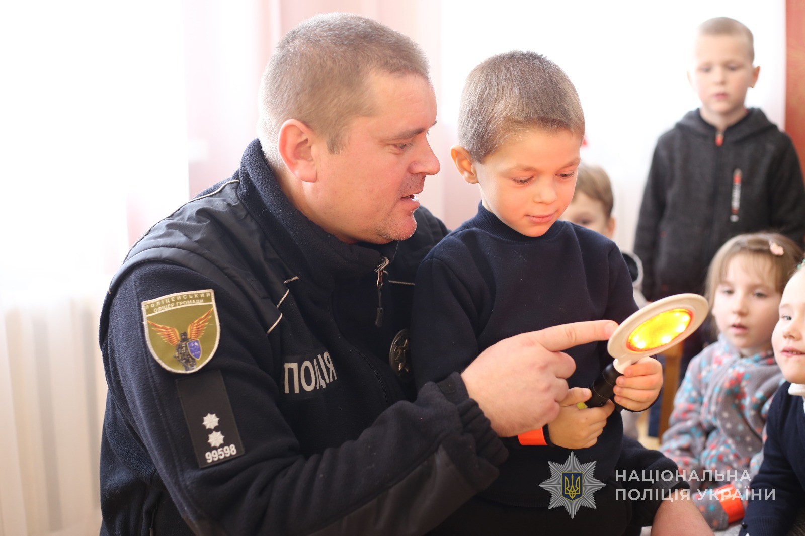 У подальшому офіцер громади пояснив, що вже на вулиці почало рано темніти, а тому в темну пору доби потрібно себе виділити, аби водій транспорту міг помітити пішохода. Поліцейський продемонстрував, які є світлоповертаючи елементи, та в подальшому роздав усім дітям спеціальні браслети.