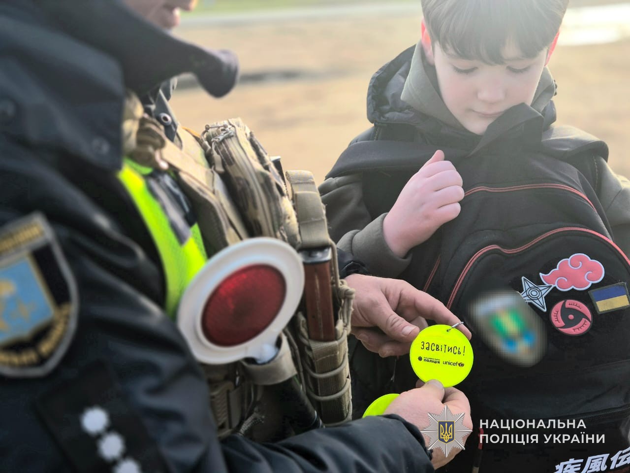 У межах акції поліцейські роздали учасникам заходу світловідбивні наліпки та брелоки «Засвітись» і продемонстрували, як правильно кріпити їх на одязі, дитячих рюкзаках або велосипеді. Такі прості засоби роблять пішоходів значно помітнішими в умовах недостатньої видимості.