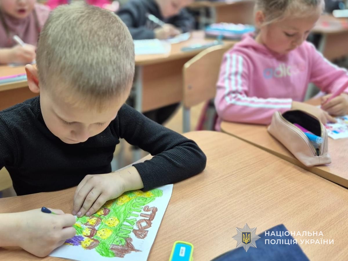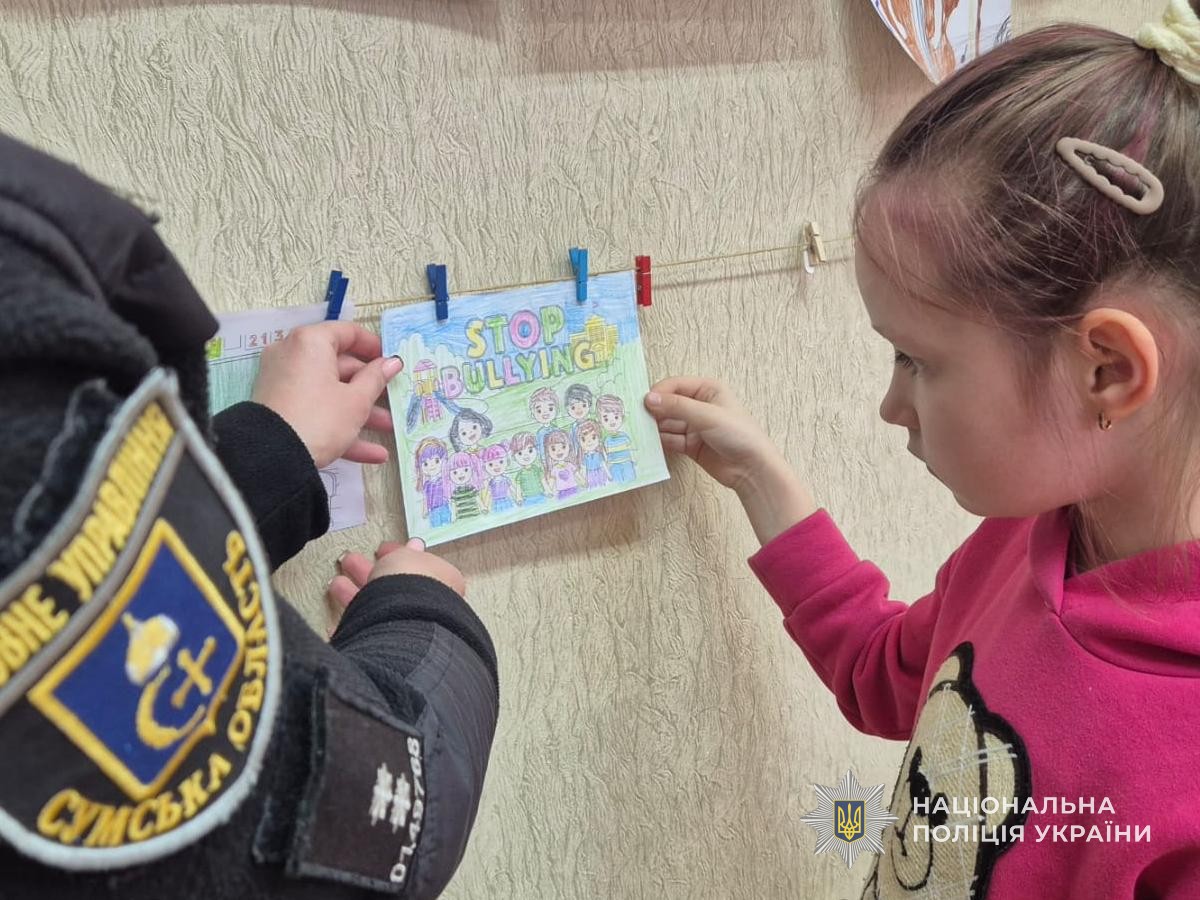 Діти уважно слухали поліцейських, активно ставили їм запитання, ділилися власними думками та разом розмальовували тематичні малюнки із закликами «Стоп булінг!», які згодом розмістили у класі.