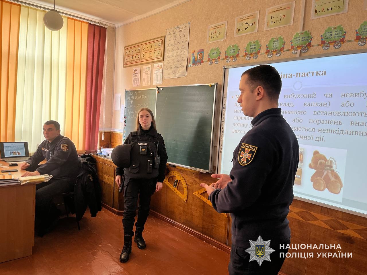 З метою підвищення обізнаності дітей офіцер Служби освітньої безпеки разом з рятувальниками пояснили та продемонстрували на макетах як виглядають наземні міни і міни-пастки, а також як їх розпізнати. Також було зауважено, що міни-пастки можуть бути замасковані під звичайні побутові предмети і навіть дитячі іграшки. Тому поліцейські звернули увагу дітей на те, щоб вони ні в якому разі ніколи не чіпали покинуті або залишені без нагляду чужі речі.
