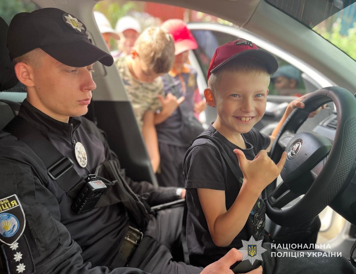 Також поліцейські продемонстрували дітям службовий автомобіль, розповіли про його призначення та оснащення. Школярі з цікавістю розглядали автівку, сиділи всередині та навіть скористалися спецсигналами — це викликало в них море позитивних емоцій.