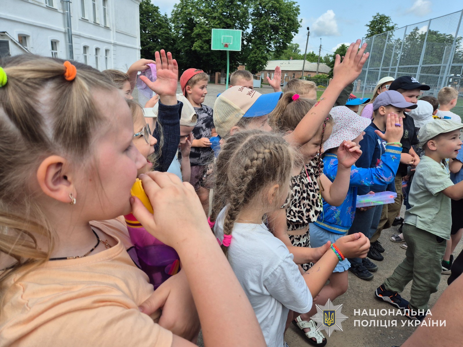 Особливу увагу приділили мінній безпеці. Поліцейські застерегли: у разі виявлення підозрілих предметів не можна їх торкатися, а необхідно одразу повідомити дорослих або зателефонувати на номери 101 чи 102.