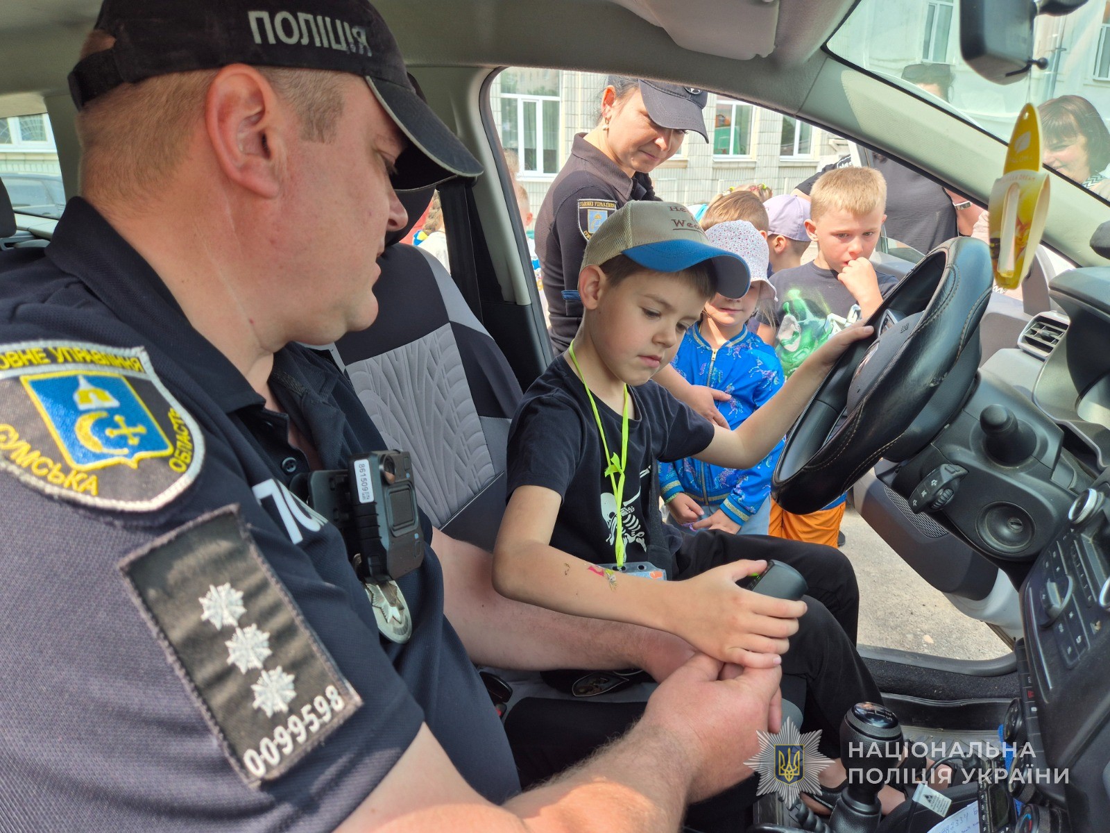 Наприкінці заходу діти мали змогу оглянути службовий автомобіль поліції, дізнатися про його оснащення та зробити пам’ятні фото з правоохоронцями.