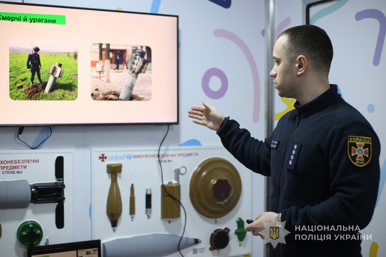 Також, школярам пояснили, які спеціальні засоби використовують у своїй діяльності поліцейські та рятувальники. Після чого діти мали можливість приміряти формений одяг обох підрозділів і тим самим змогли побути в ролі поліцейського та рятувальника.