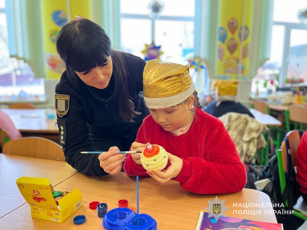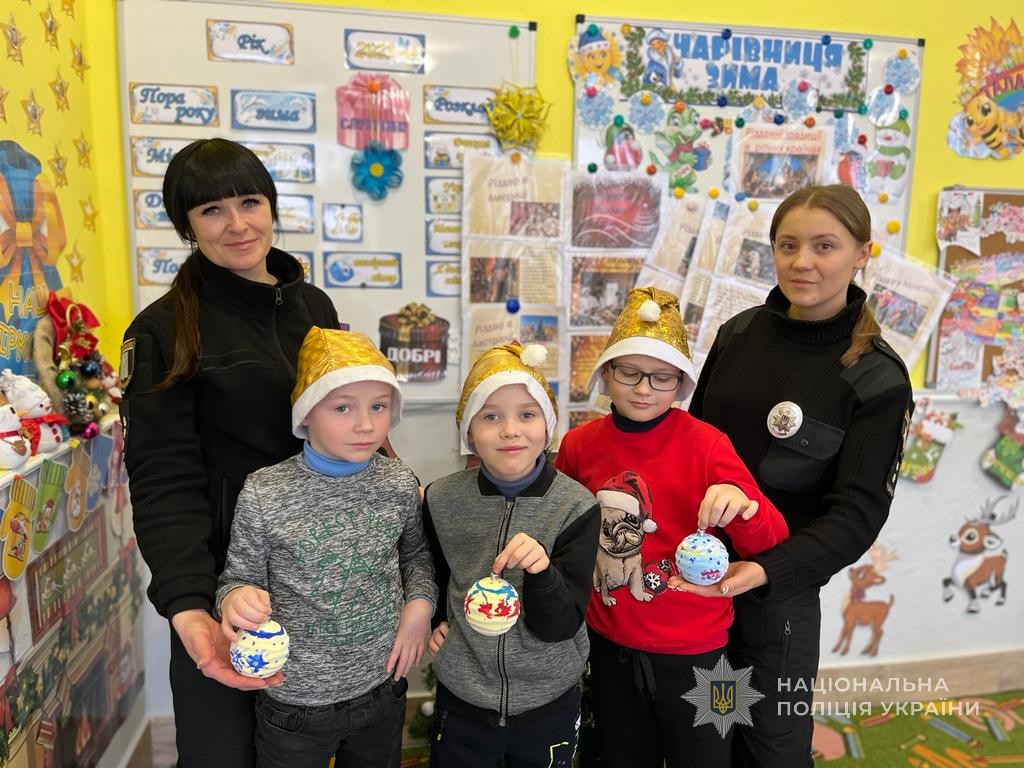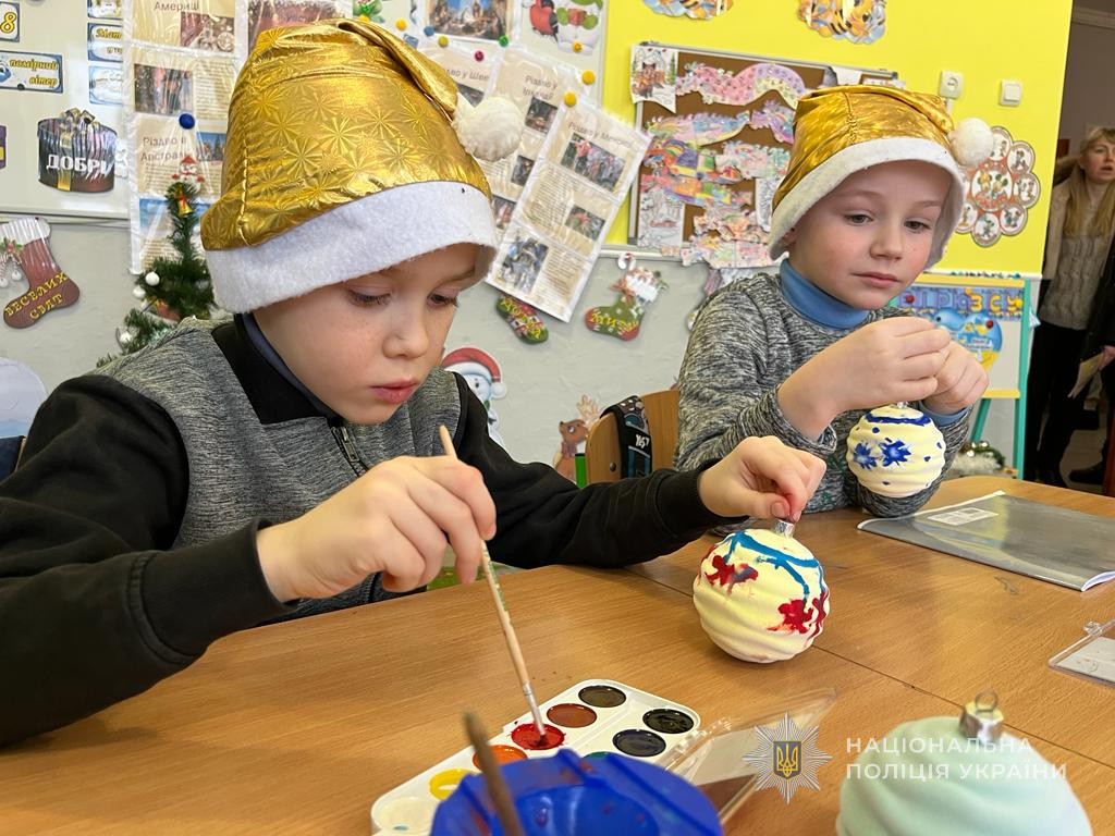 У Ромнах правоохоронці разом зі школярами створили новорічні іграшки для захисників та захисниць