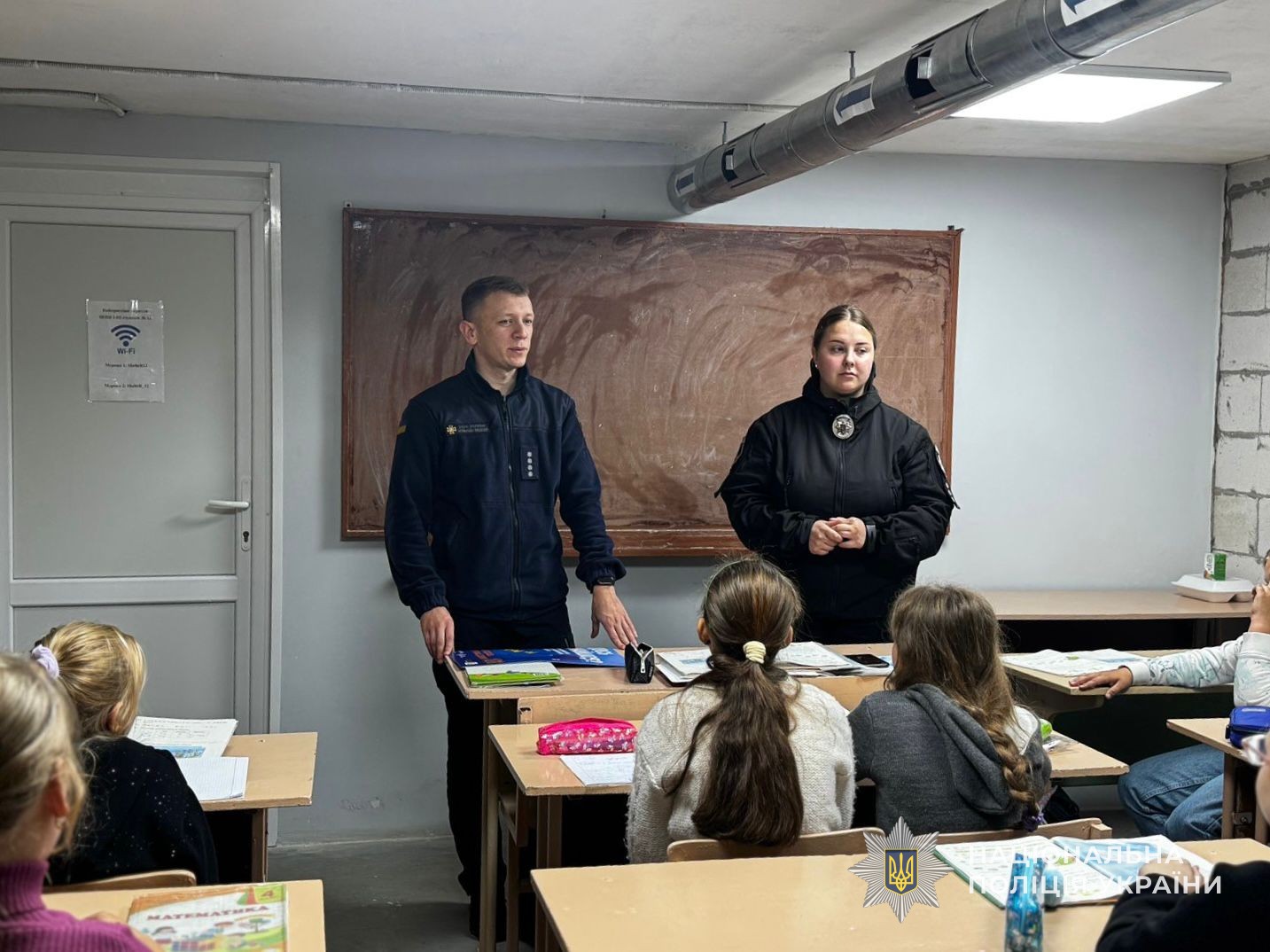Крім того, учням нагадали правила дій під час повітряної тривоги. Інспектор пояснила дітям чому необхідно негайно спускатися в укриття, як поводитися у сховищі та чому не можна ігнорувати сигнали сирени. Також пригадали, як правильно діяти у випадку виявлення підозрілих предметів.