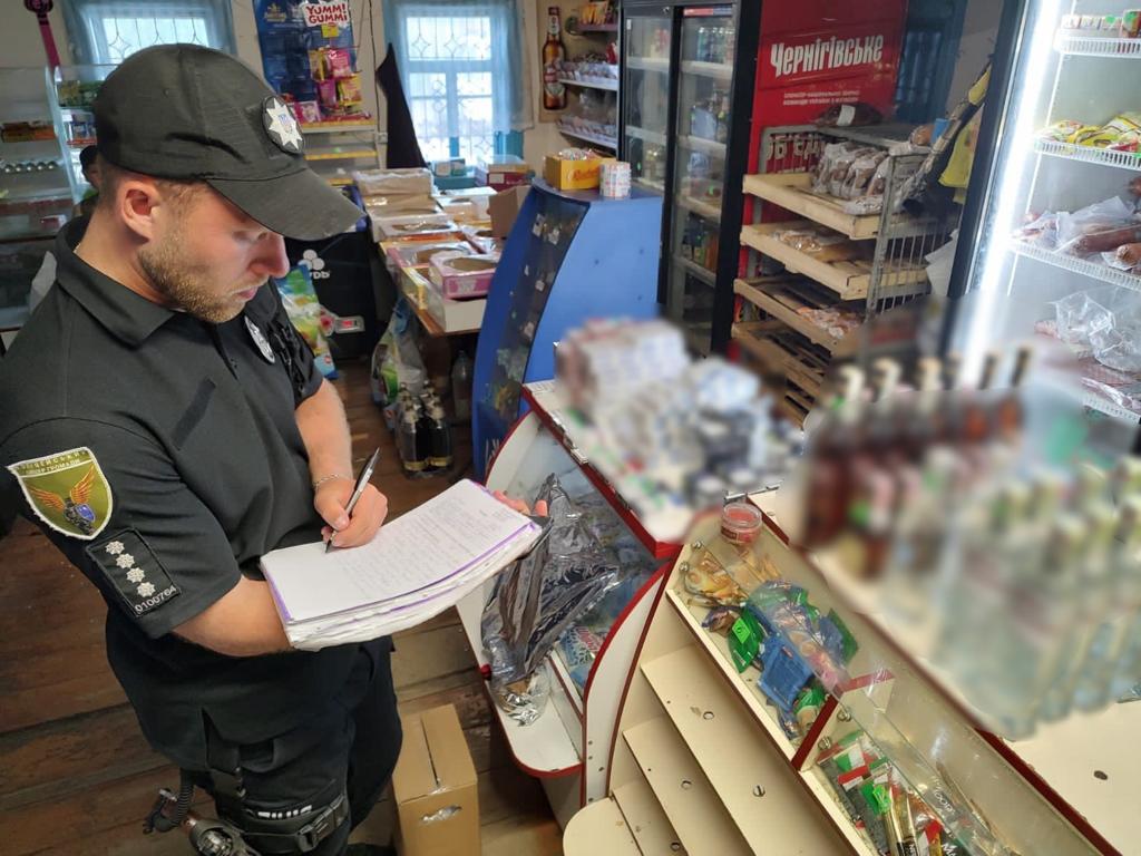 В одному із сіл біля Шостки підприємець здійснював незаконний продаж алкогольної та нікотинової продукції. Дане порушення було виявлено поліцейськими офіцерами громади, які в свою чергу склали на порушника протокол про адміністративне правопорушення.