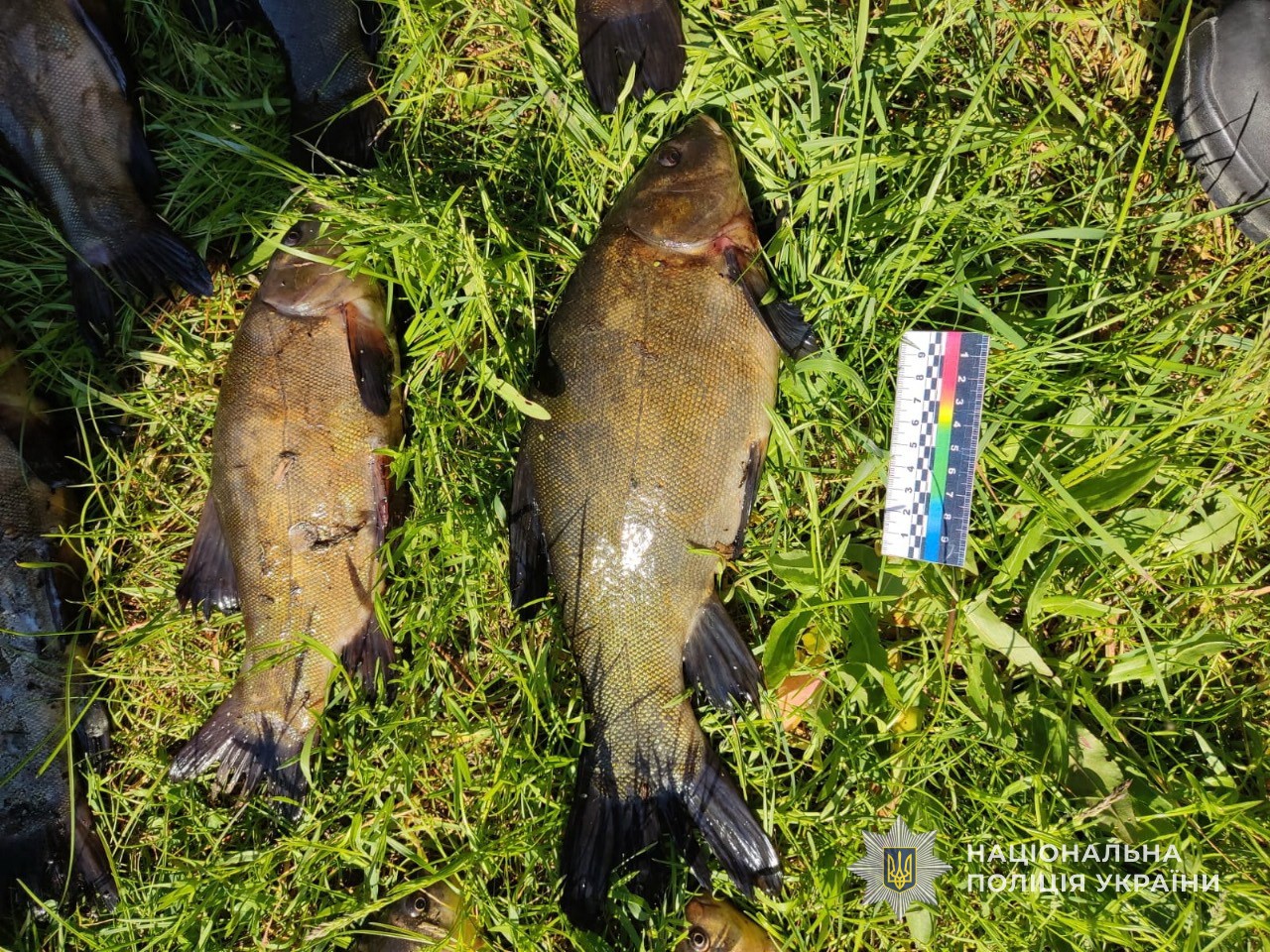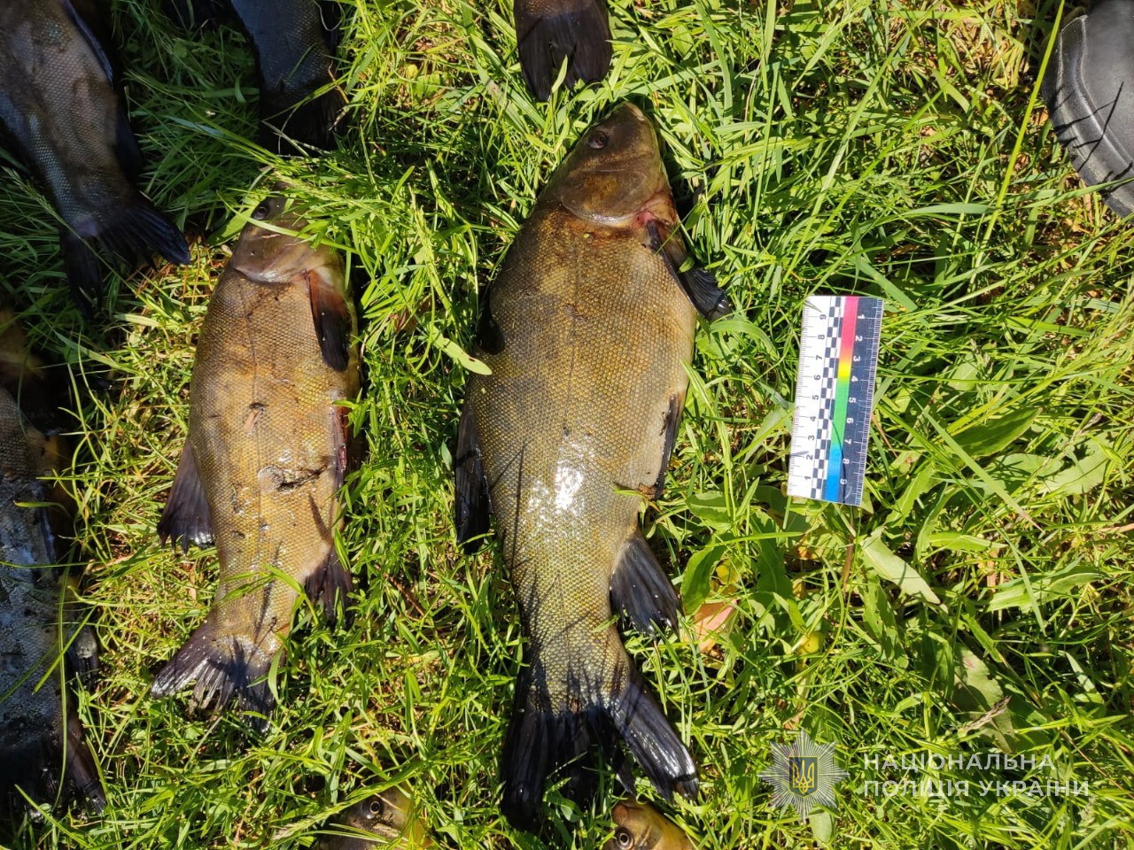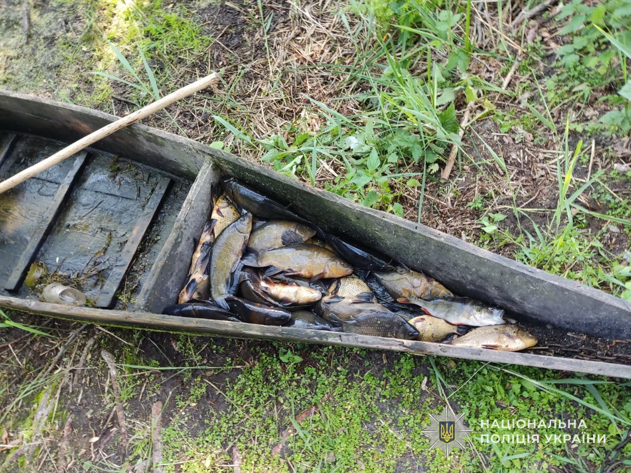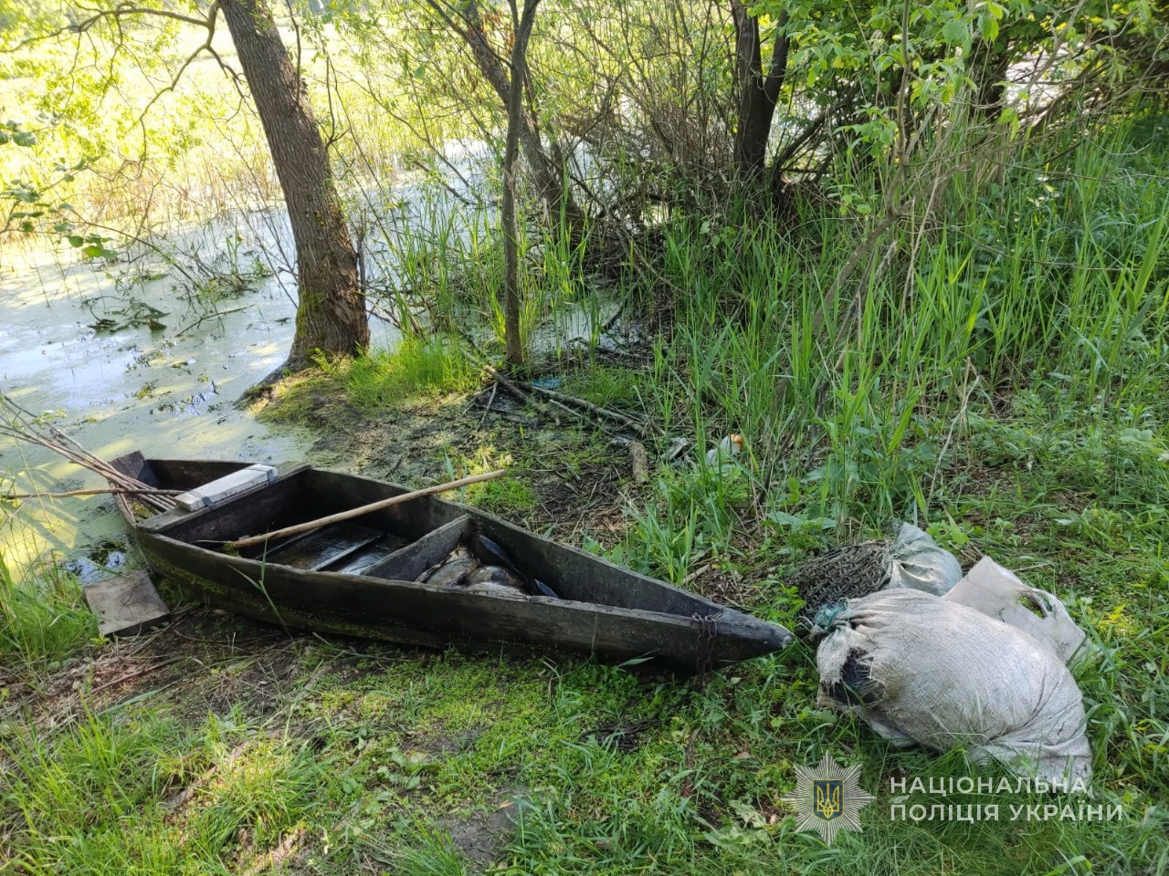 У браконьєра правоохоронці виявили і вилучили 32 рибини, таких видів як лин, окунь та золотий карась, дерев’яний човен, а також чотири сітки.