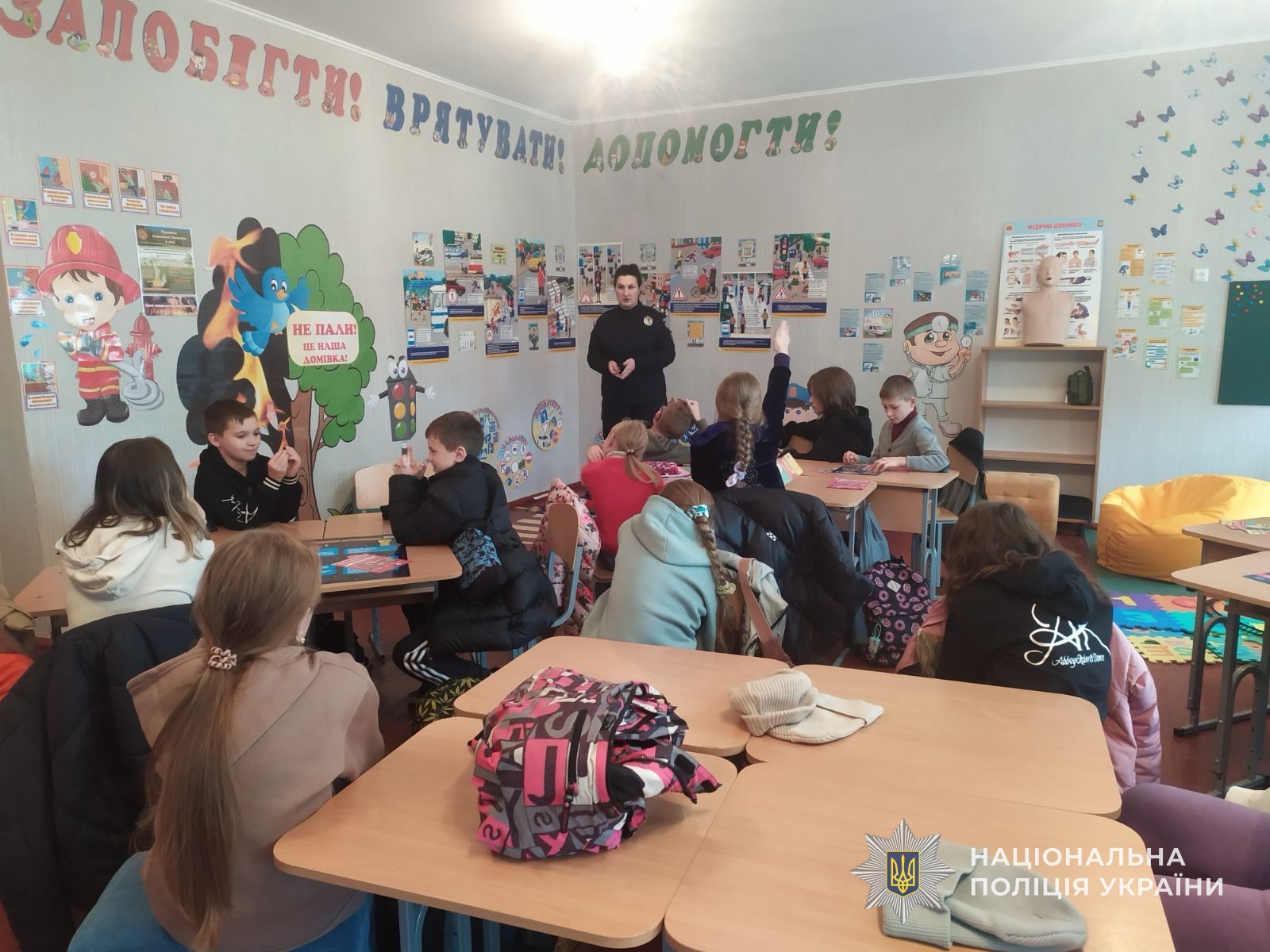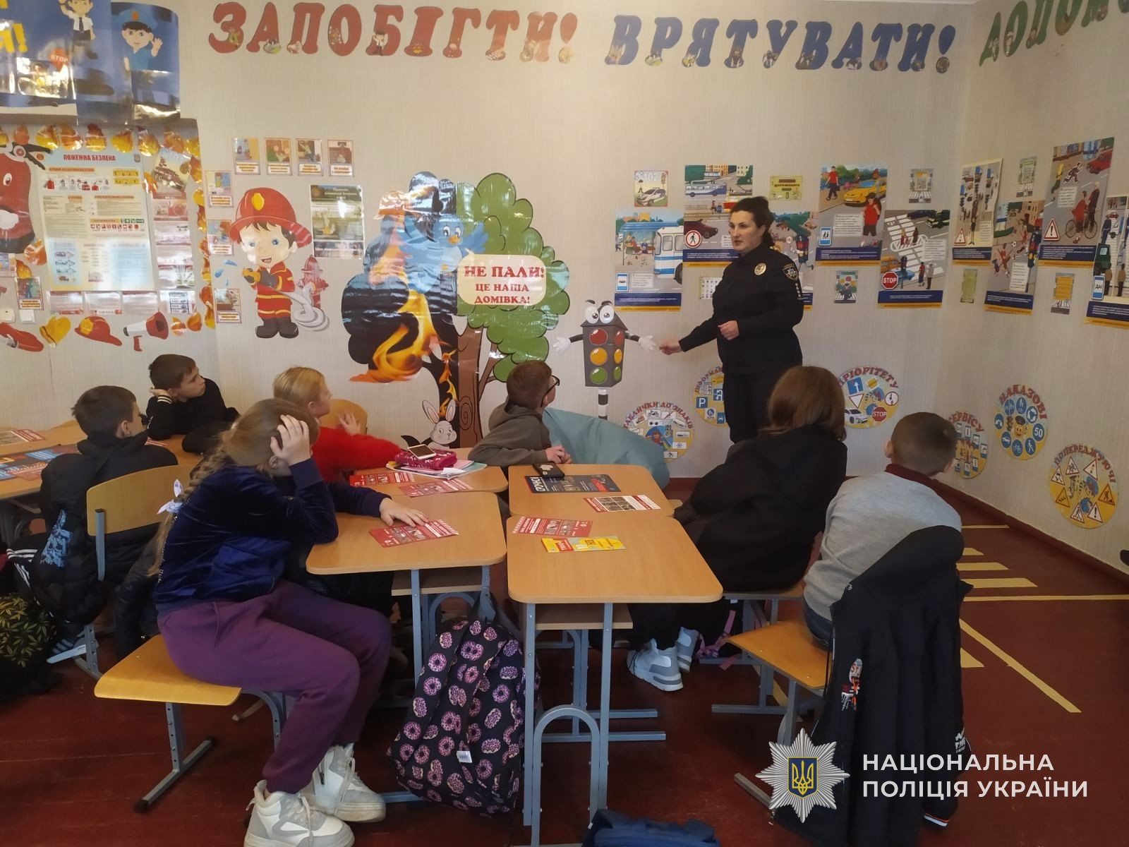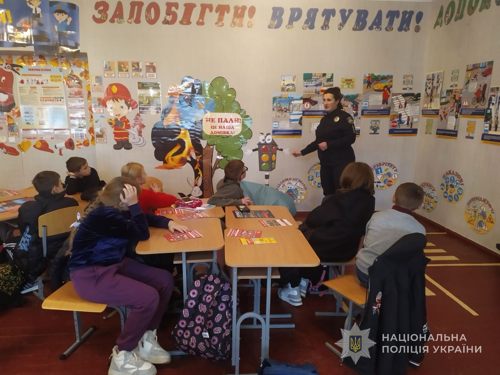 Із найменшими школярами заняття проходило в класі безпеки. Під час заходу дітки вчили основні Правила дорожнього руху, дії, які слід виконувати на певний колір світлофору, види дорожніх знаків та як безпечно переходити дорогу. Інспектор наголосила, що правил повинні дотримуватись не лише неповнолітні, а й дорослі пішоходи.