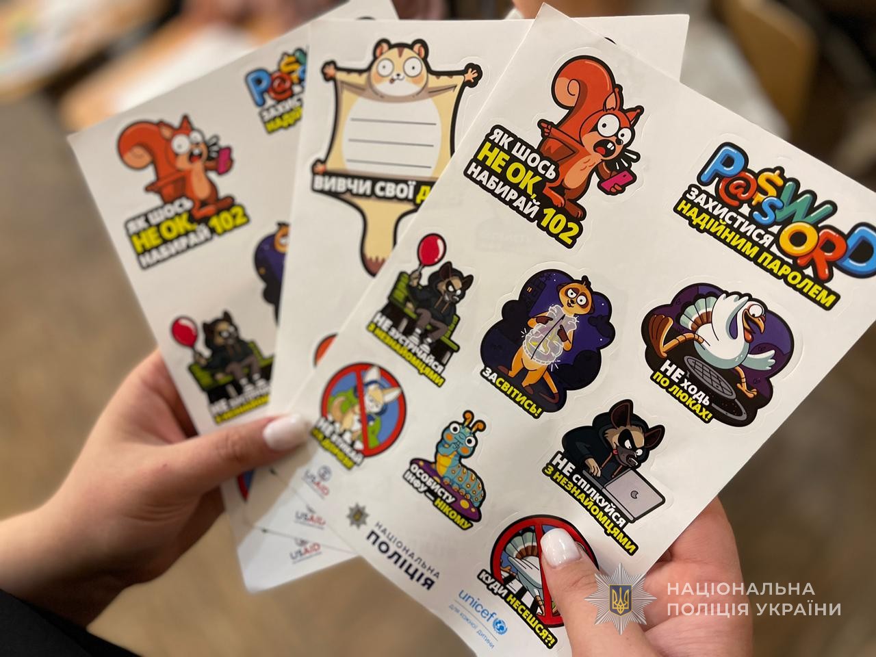 Після чого, школярі отримали тематичні розмальовки, які допомогли їм краще засвоїти опрацьовану тему. Також дітки отримали наліпки із нагадуваннями про безпечну поведінку у різних ситуаціях.