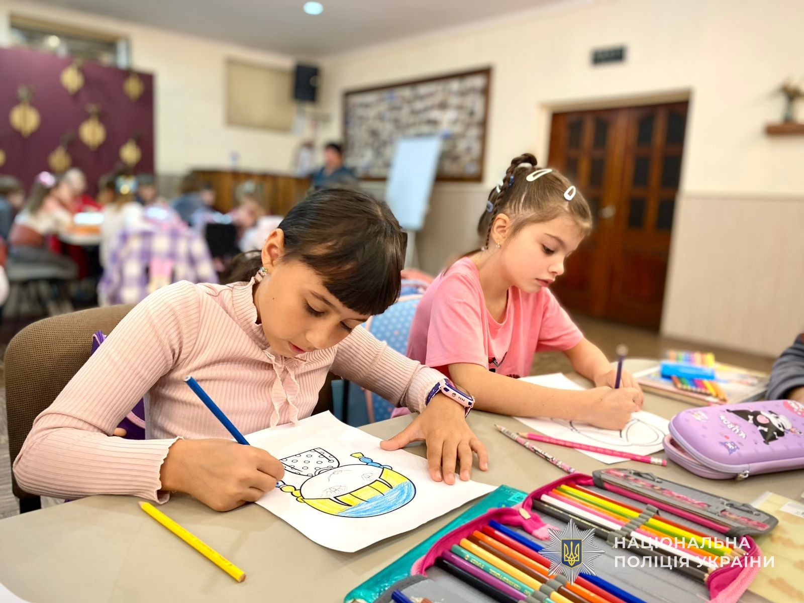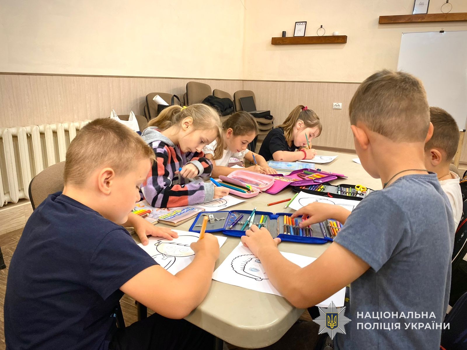 Наприкінці заняття інспектор роздала кожному школярам малюнки, на яких вони мали зобразити певну емоцію та розфарбувати його. Така впрааа стала своєрідним психологічним розвантаженням, допомагаючи дітям сконцентруватися та позитивно завершити заняття.