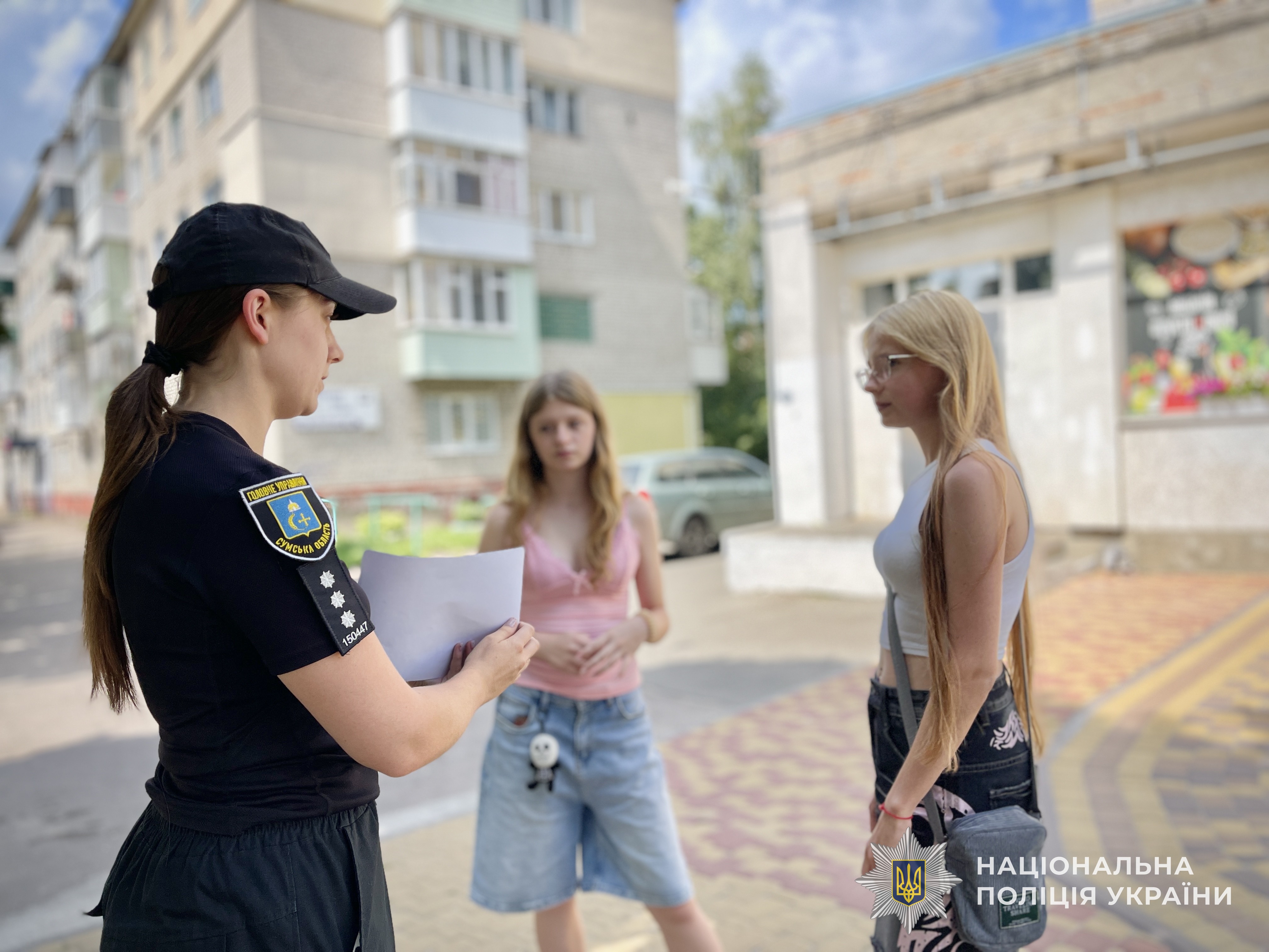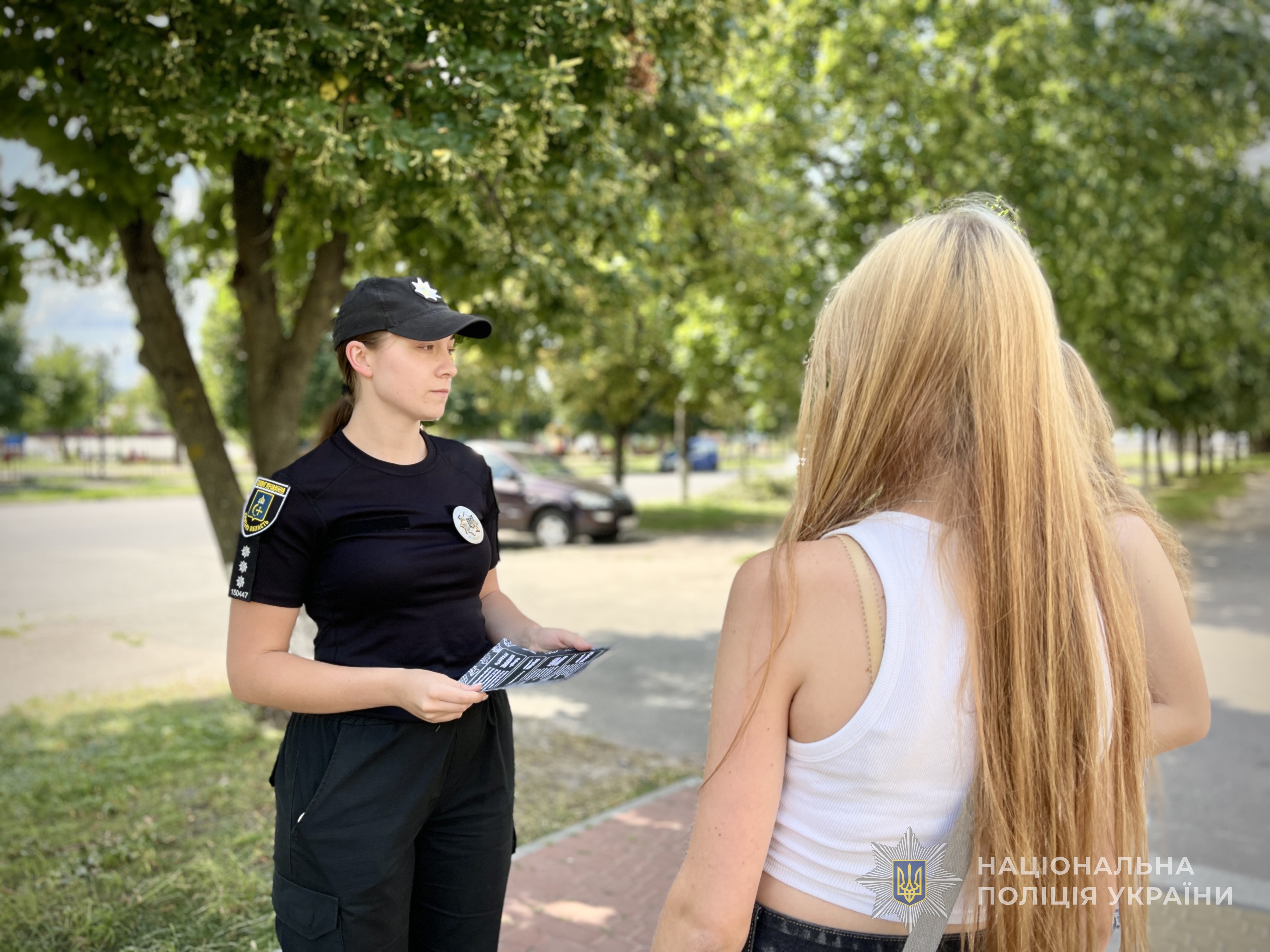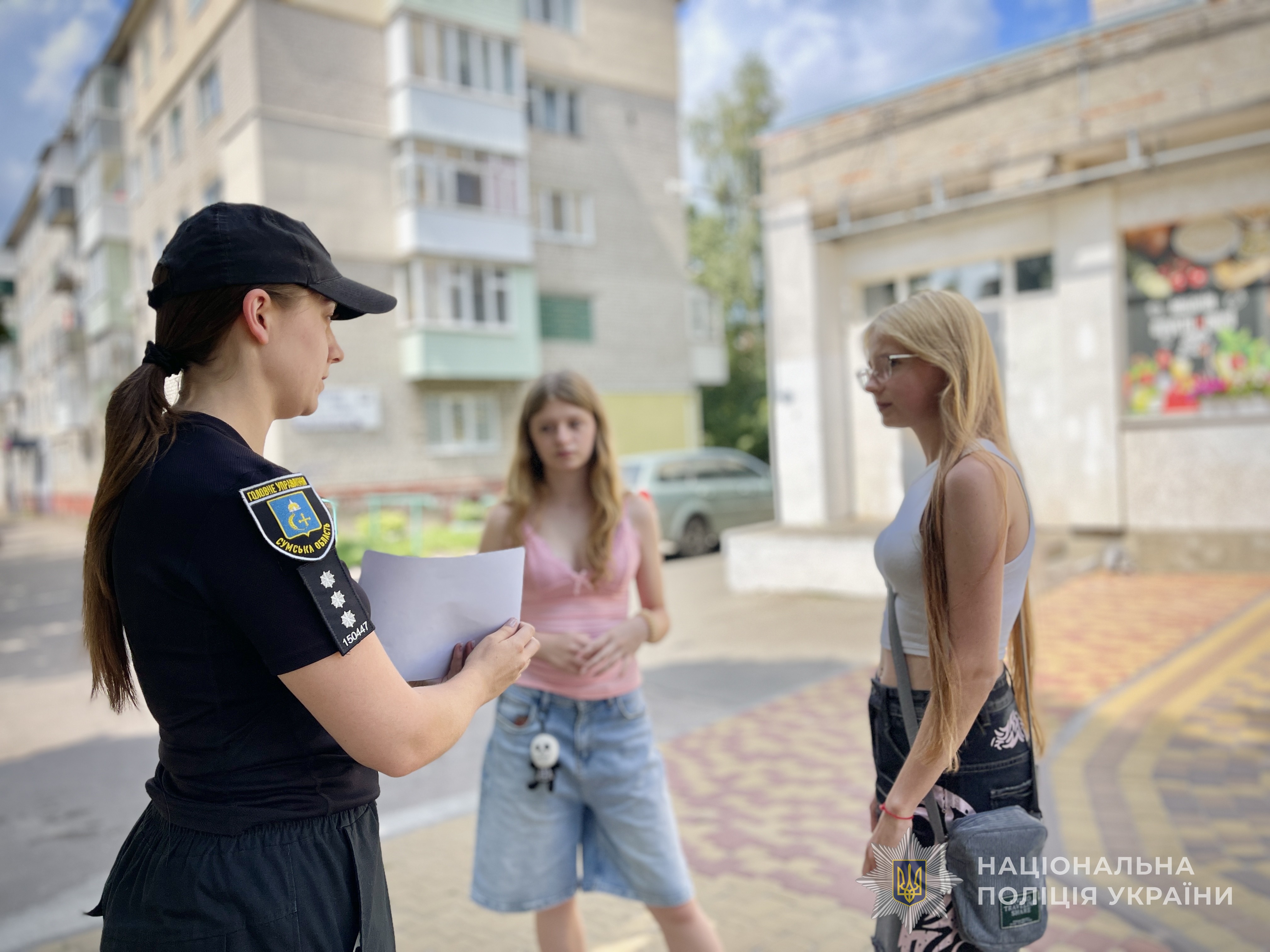 Інспектор служби освітньої безпеки провела профілактичну роботу на вулиці, спілкуючись із дітьми про правила безпечної поведінки під час літніх канікул.