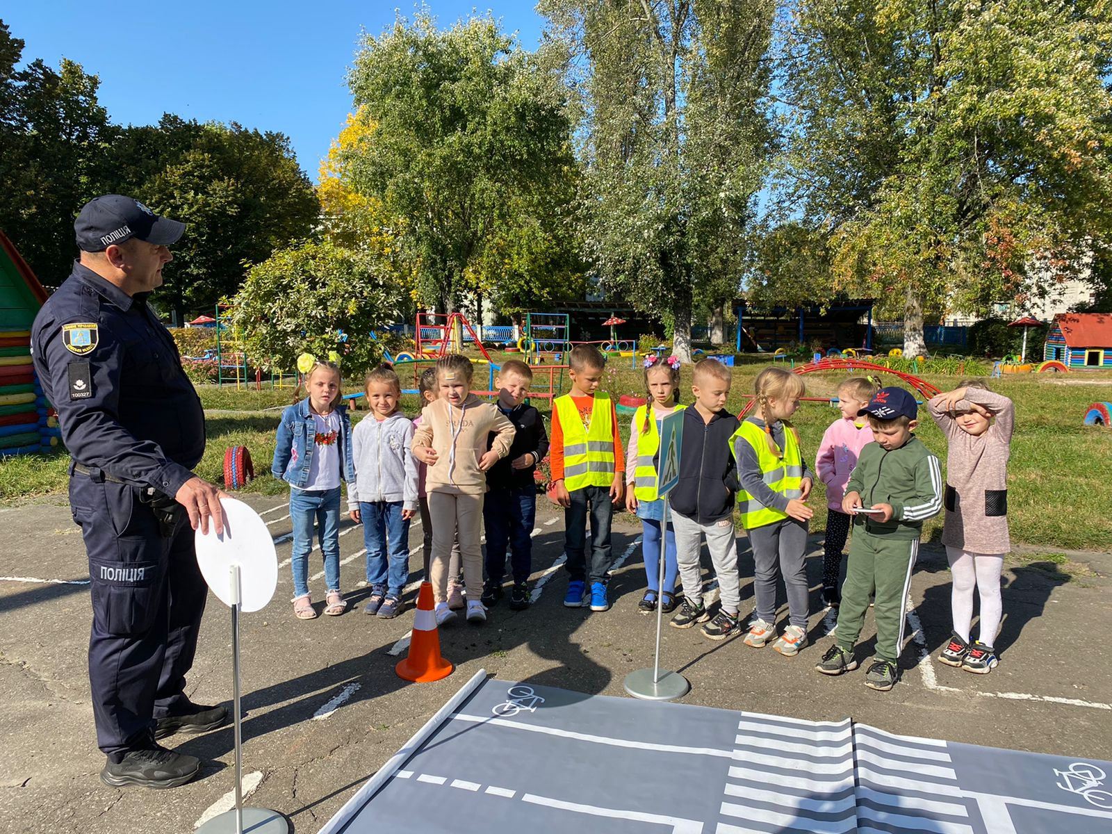 Інспектори познайомилися з вихованцями закладу та запропонували пограти в цікаву гру. Діти навчилися правильно перетинати проїжджу частину дороги та дізналися значення знаків, які найчастіше зустрічаються. До того ж поліцейські розповіли про регулювальників, після чого малеча також захотіла себе спробувати в цій професії.