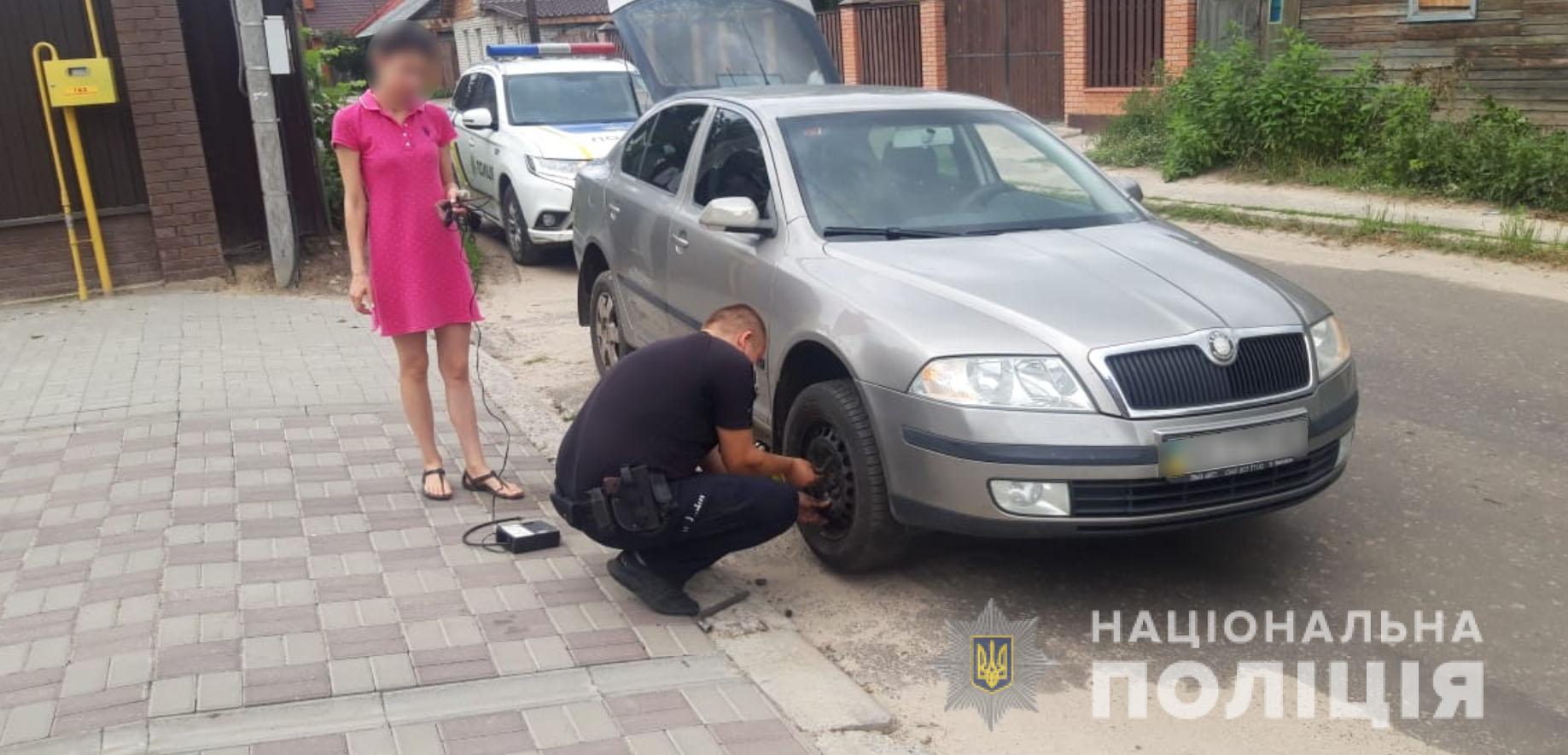 Працівники поліції запропонували керманичці свою допомогу в заміні пошкодженого колеса, що було пробите. На що вона з задоволенням погодилася.