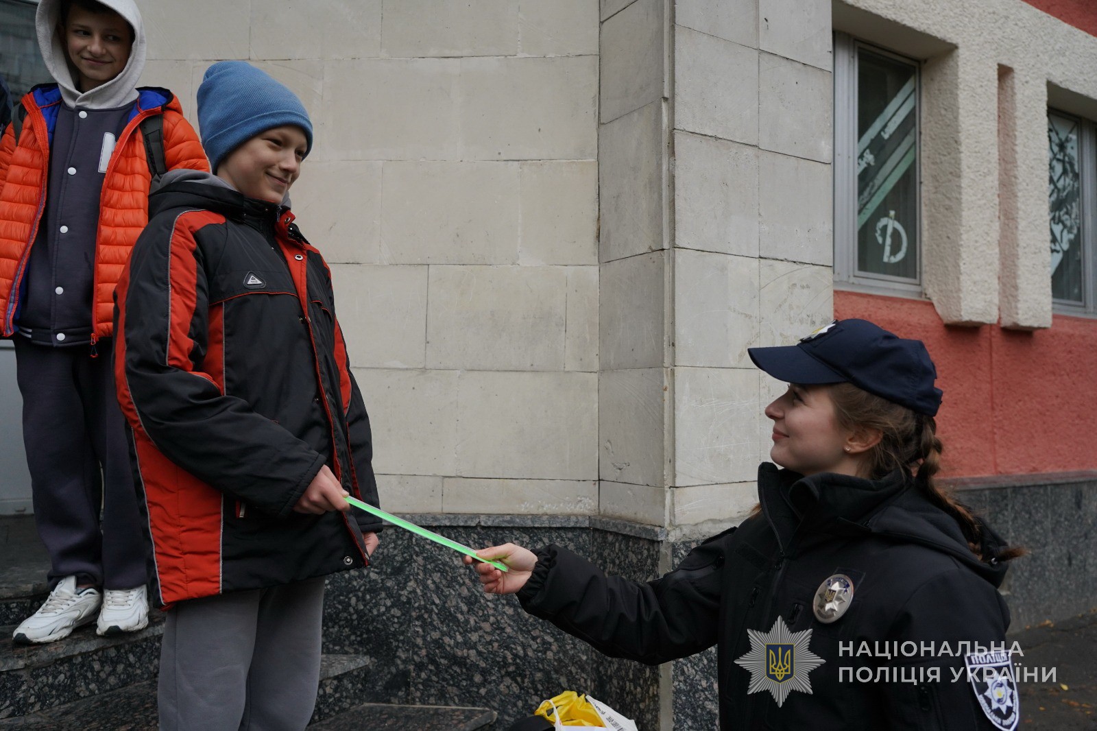 Ювенальні поліцейські також нагадали, що не слід забувати про своїх домашніх улюбленців та потурбуватись, аби вони також виходили на прогулянку в темну пору доби з яскравими елементами. Наприкінці зустрічі поліцейські подарували дітям стрічки зі світловідбивальними властивостями.