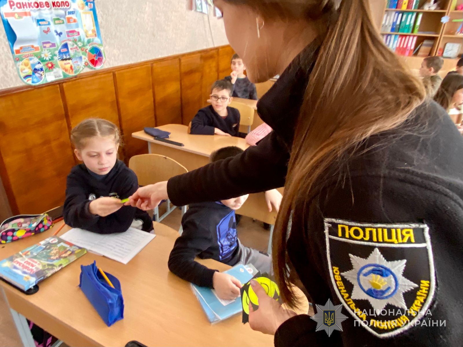По завершені заходу, ювенали подарували кожному учню спеціальні світлоповертаючі наліпки, які стануть у нагоді під час повернення додому після занять у вечірній час.