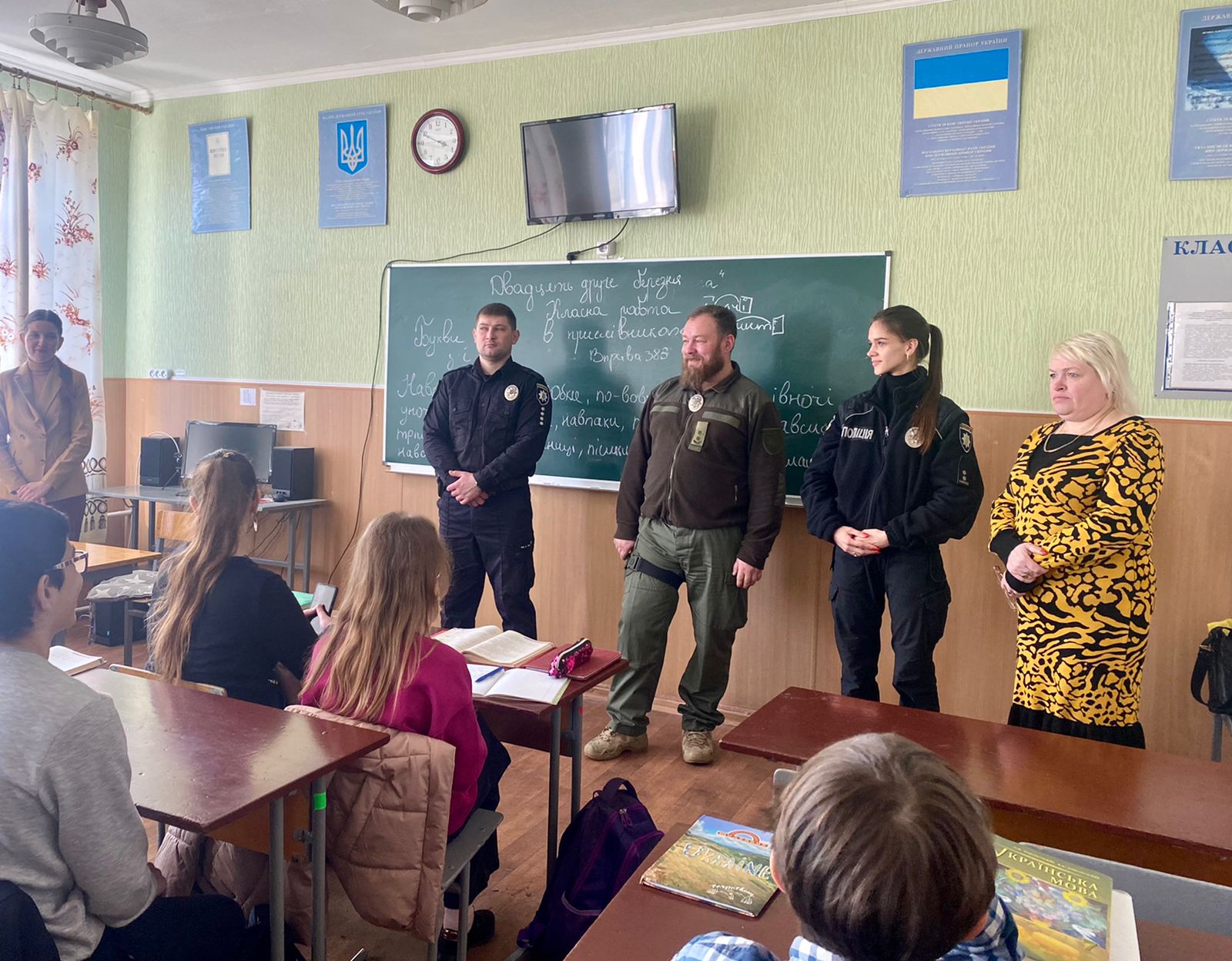 Правоохоронці завітали на урок до учнів однієї із шкіл обласного центру, аби нагадати про правила особистої безпеки у період дії воєнного стану. Також, поліцейські розповіли про види відповідальності неповнолітніх за вчинення правопорушень.