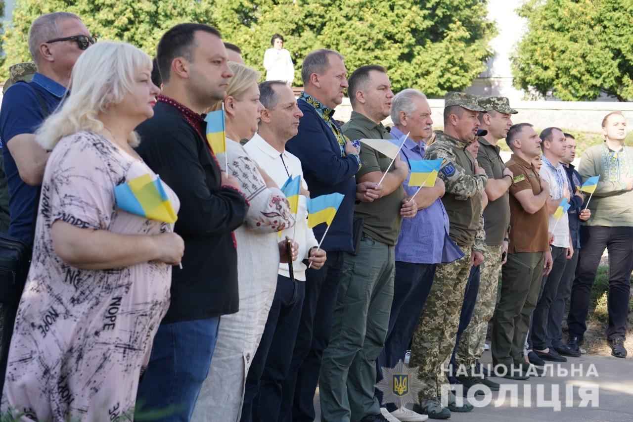 Під звуки державного гімну, синьо-жовтий стяг гордо піднявся в небо, символізуючи незламність духу народу та прагнення до свободи, пам'ять про тих, хто у різні часи і до сьогоднішнього дня відстоюють державність України.