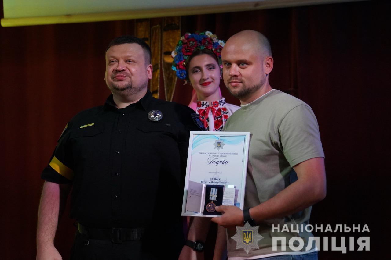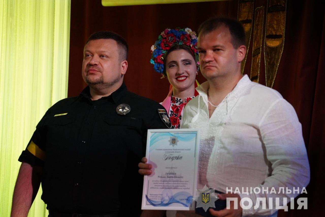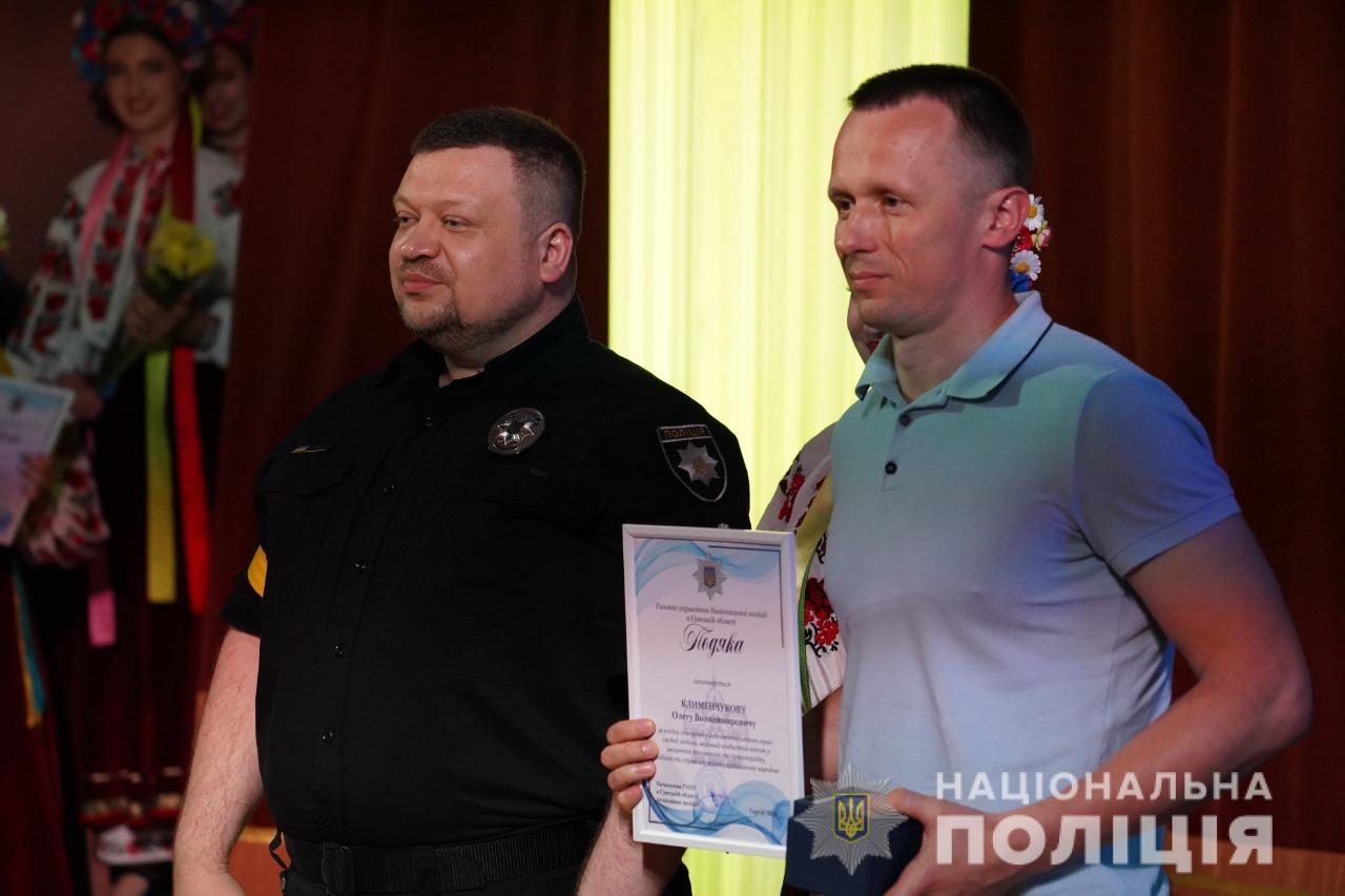 Після цього відбулося нагородження кращих поліцейських Сумського районного управління поліції. Так, за сумлінне виконання службових обов’язків, вагомий внесок у справу боротьби зі злочинністю та високий професіоналізм Сумський міський голова відзначив грамотою трьох співробітників поліції.