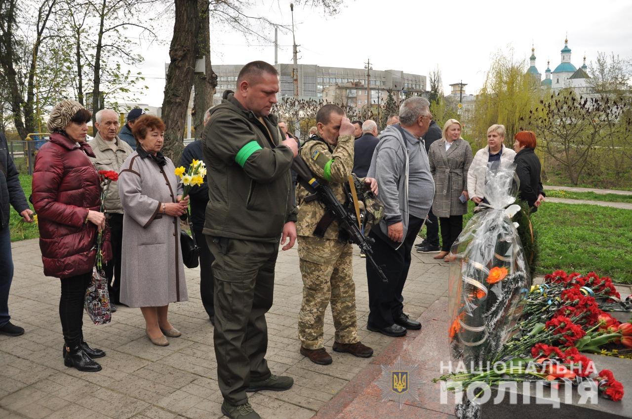 Учасники заходу поклали квіти до меморіалу героям-«чорнобильцям» та хвилиною мовчання пом’янули тих, хто ціною власного життя та здоров’я під час радіаційної битви врятував світ від атомної загрози.