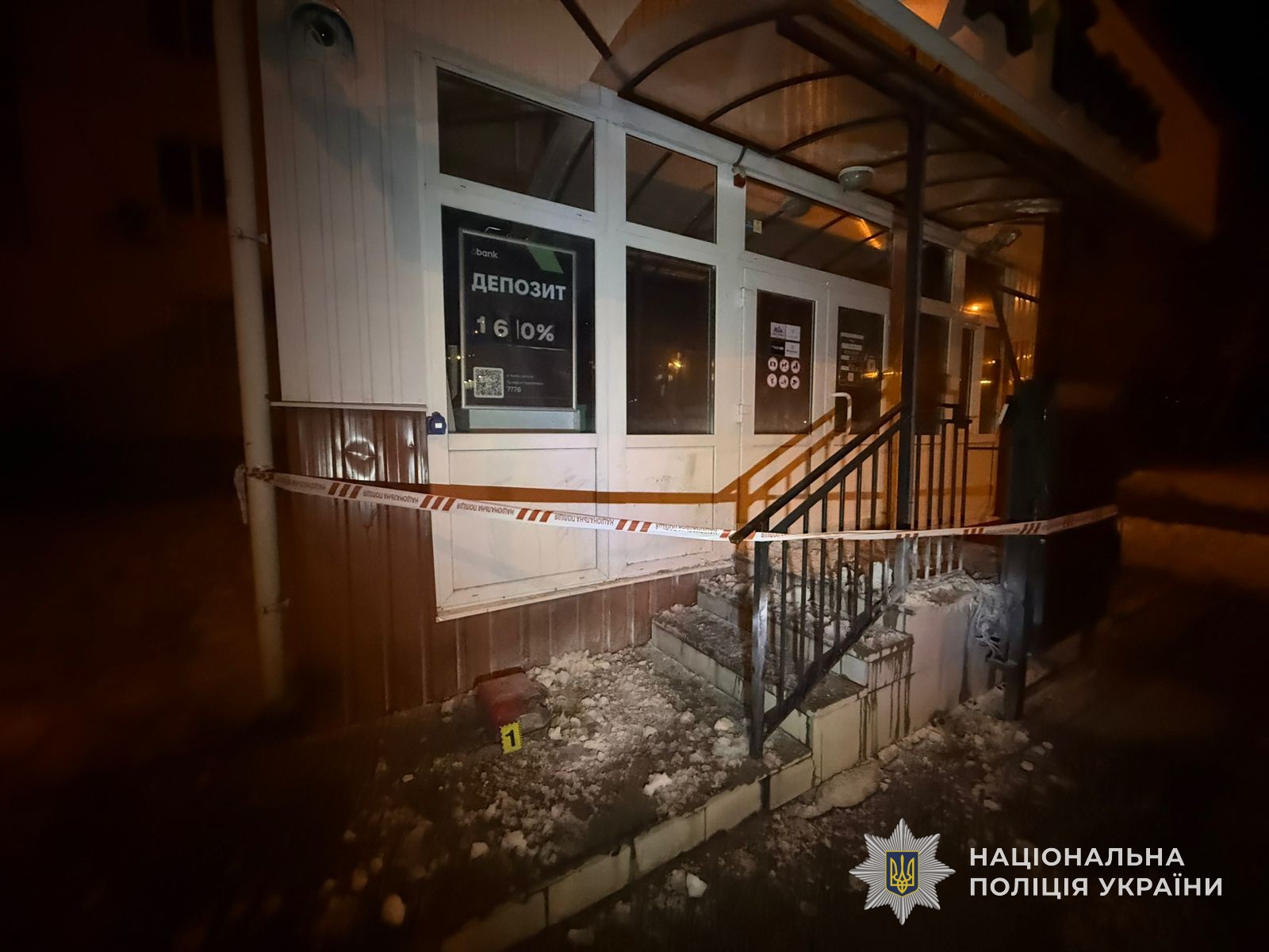 Під час патрулювання співробітники Управління поліції охорони помітили полум’я біля вхідних дверей одного з банківських відділень міста. Не гаючи часу, правоохоронці самостійно загасили пожежу. Під час огляду місця події вони виявили пластикову ємність із залишками легкозаймистої речовини, що свідчило про можливий підпал. На місце події одразу була викликана слідчо-оперативна група.