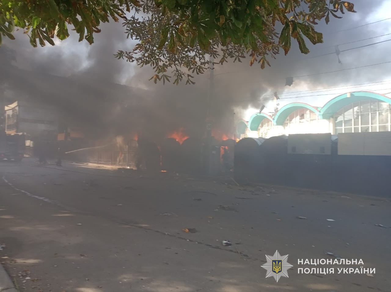 Внаслідок влучання виникла пожежа, пошкоджено приміщення ринку та будівлі з офісними приміщеннями, розташовані навпроти місця удару. Інформація про постраждалих уточнюється.