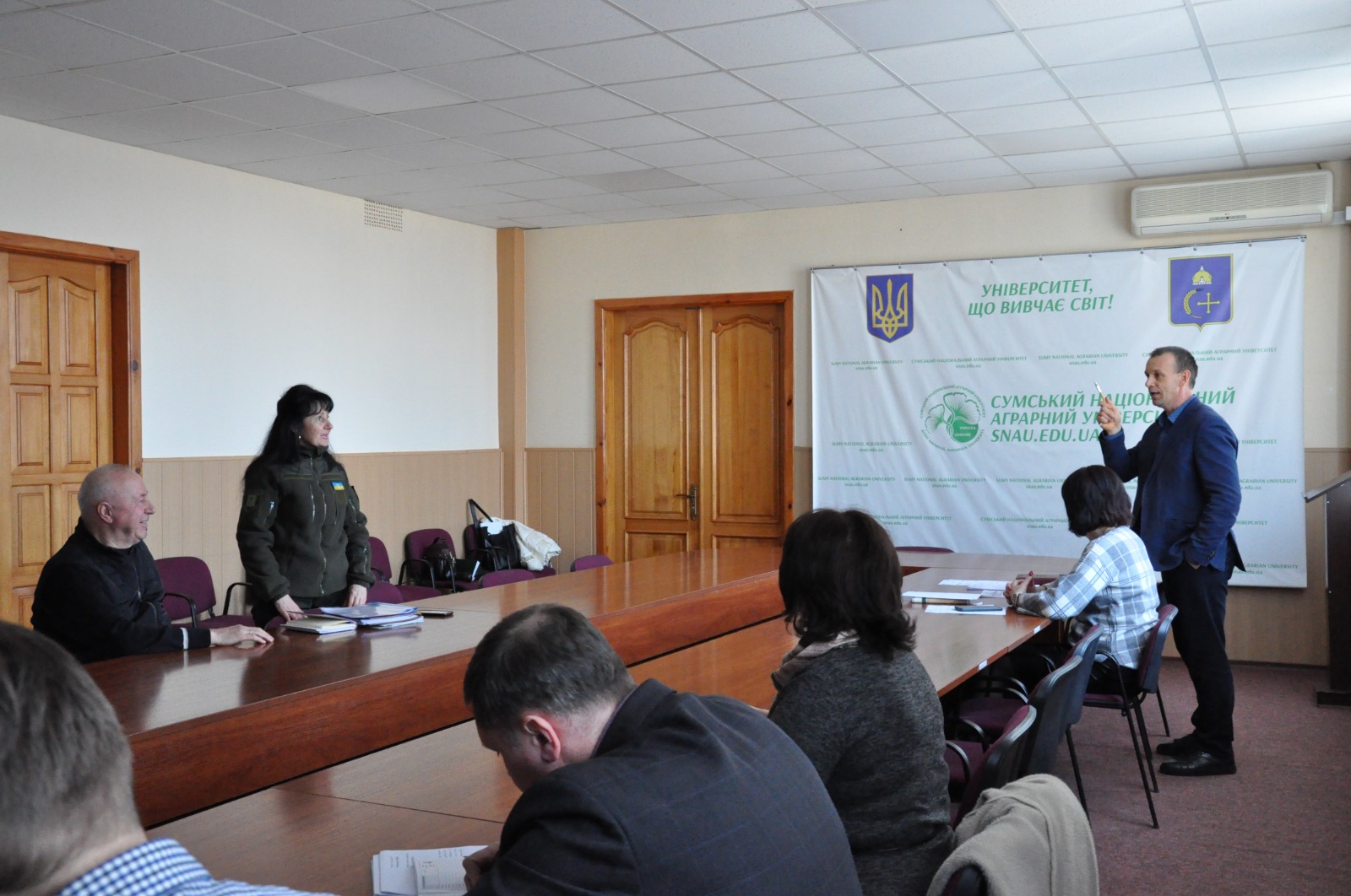 У рамках проєкту «Гвардія наступу» заступник начальника управління кадрового забезпечення Головного управління Національної поліції в Сумській області Тамара Прокопенко відвідала Сумський державний університет і Сумський національний аграрний університет та розповіла присутнім про новостворену штурмову бригаду Національної поліції України «Лють» та як до неї долучитися.