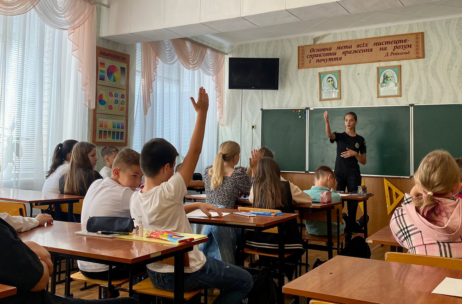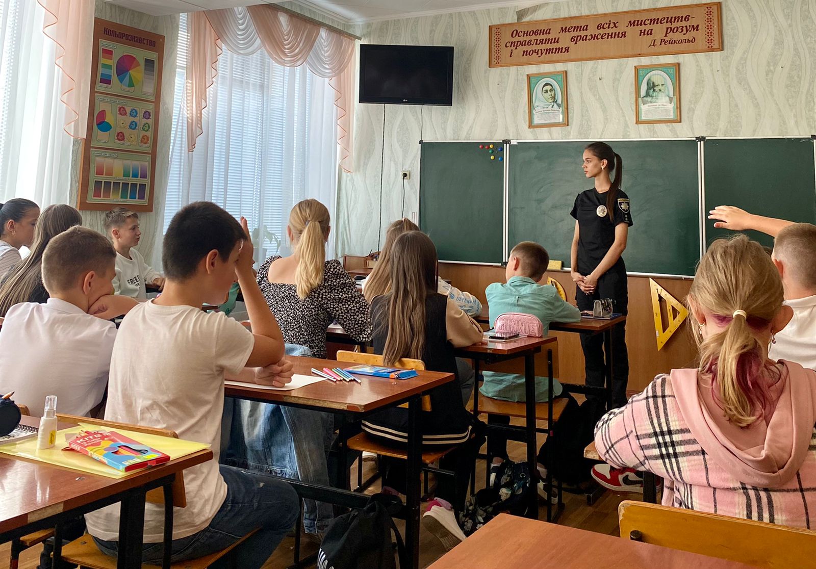 Також, разом з учнями згадали права й обов’язки, які можуть стосуватися їх як пішоходів чи велосипедистів та наголосили на обов’язковому дотриманні правил дорожнього руху, задля уникнення неприємних ситуацій. Крім цього, закликали не нехтувати сигналами повітряної тривоги або ж ракетної небезпеки.