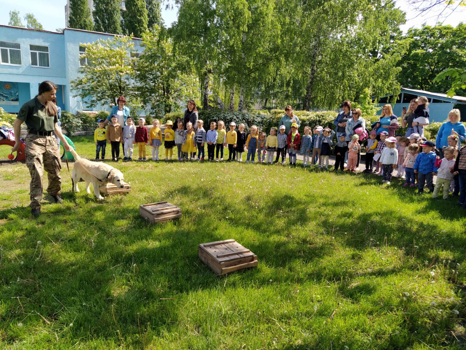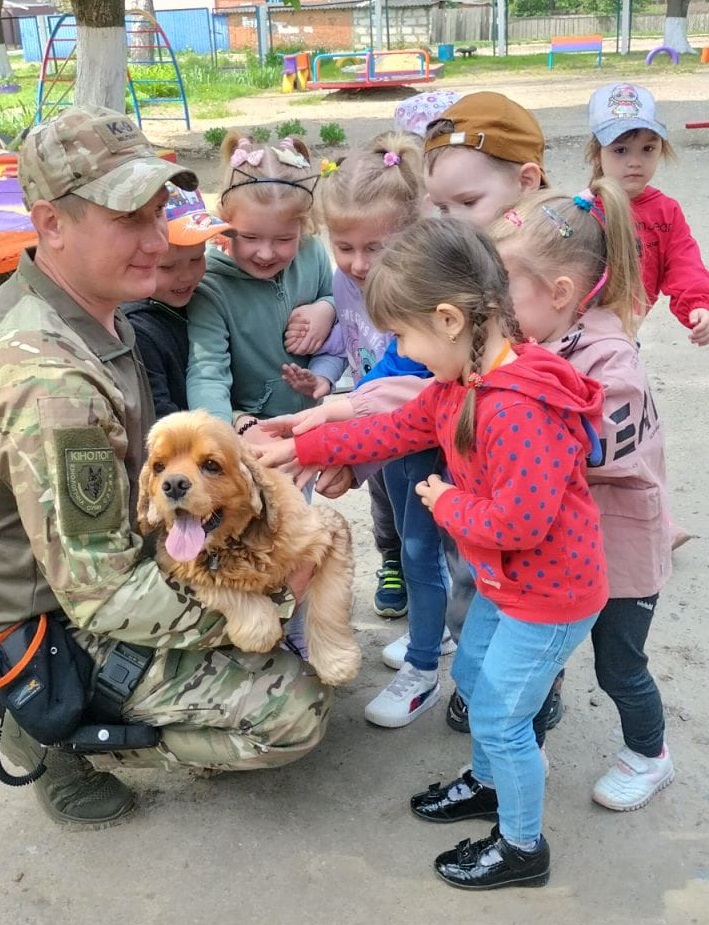 Кінологи познайомили дітлахів зі своїми вірними друзями - службовими собаками, які швидко знаходять замасковані зброю, вибухівку чи наркотики. В свою чергу, чотирилапі продемонстрували присутнім, як знаходять підозрілі предмети.