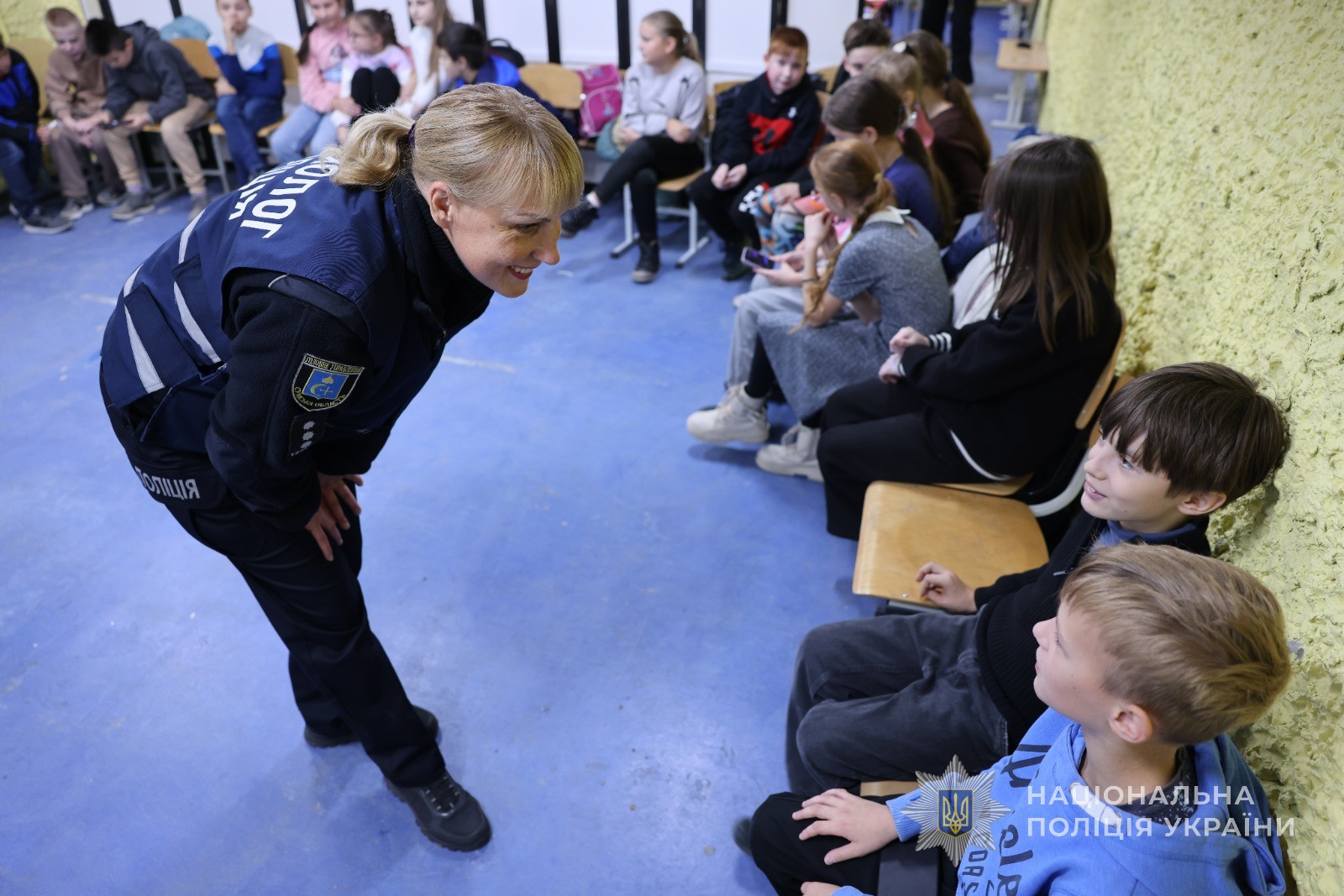 Під час візиту правоохоронці провели активності серед учнів та вчителів у форматі вправ, спрямованих на психологічне розвантаження та поліпшення психоемоційного стану. Зокрема, психолог Сумського районного управління поліції розповіла дітям про методи саморегуляції, самовдосконалення та підтримки свого ментального здоров’я на належному рівні. Також, вона провела зі школярами вправи на краще запам’ятовування потрібної інформації, покращення уваги та правильне реагування на травмуючі події, які можуть виникнути будь-якої миті. Діти із задоволенням повторювали за спеціалістом рухи та жести, демонструючи зацікавленість.