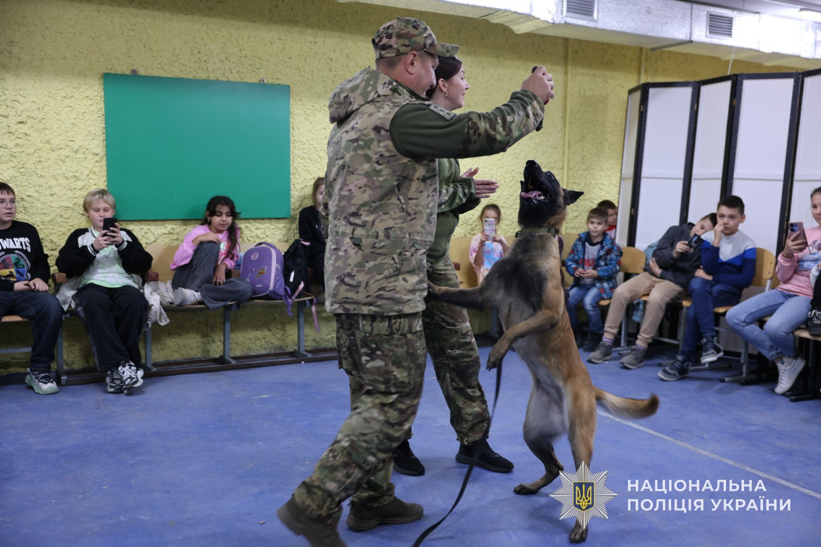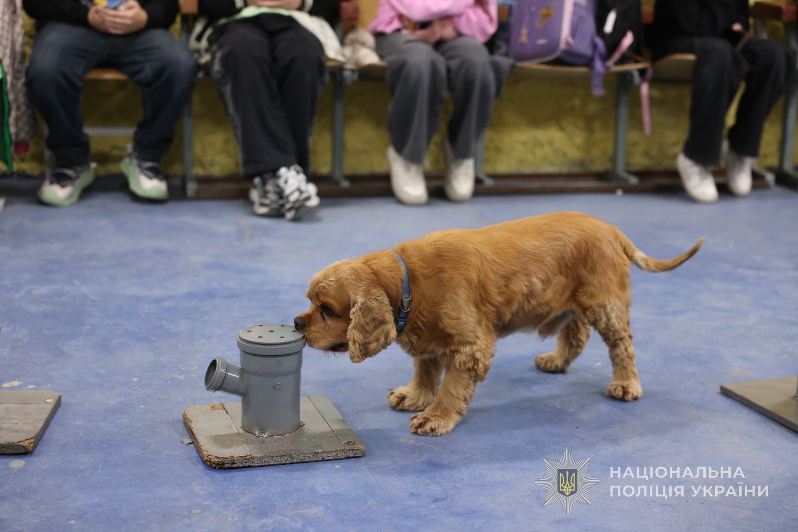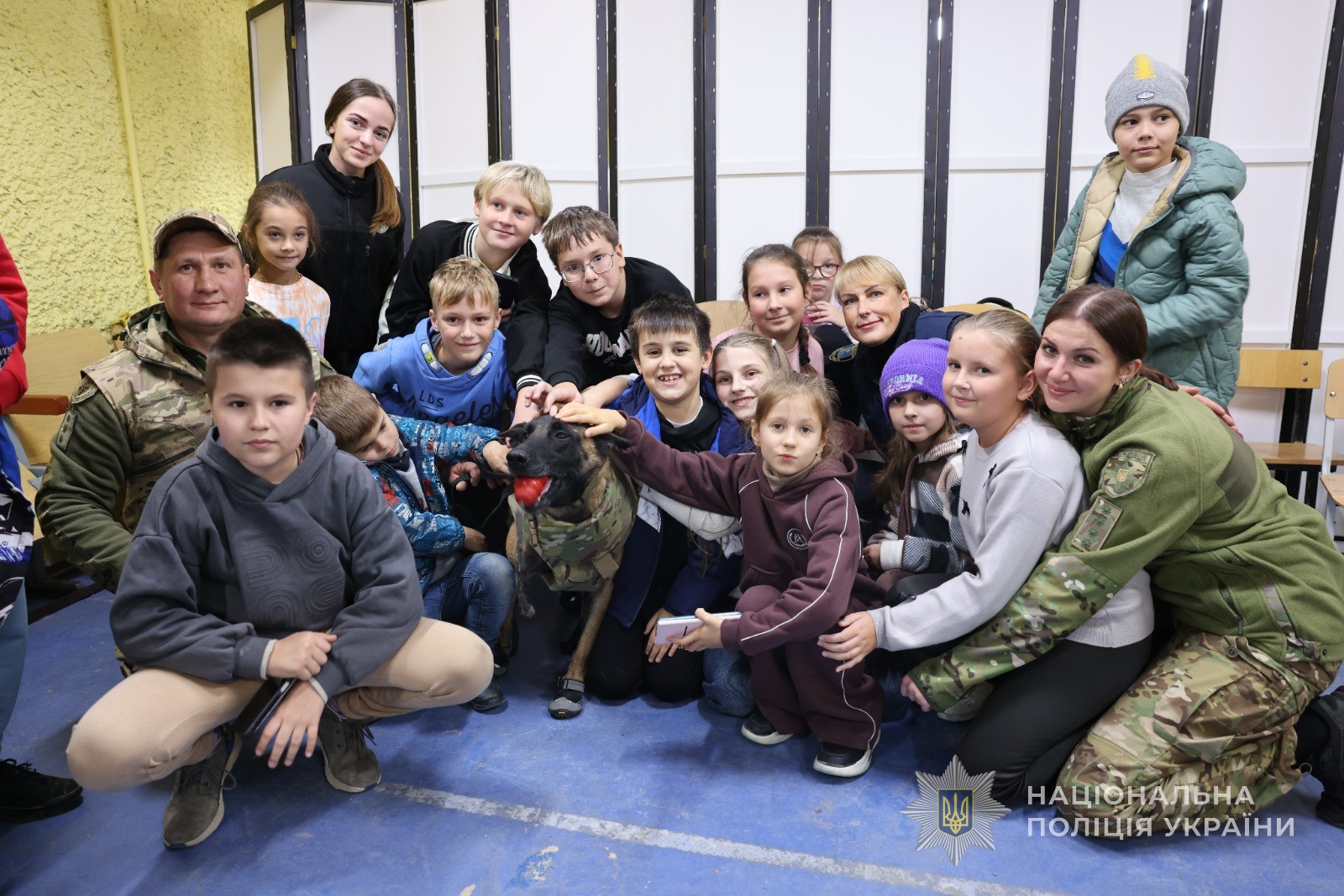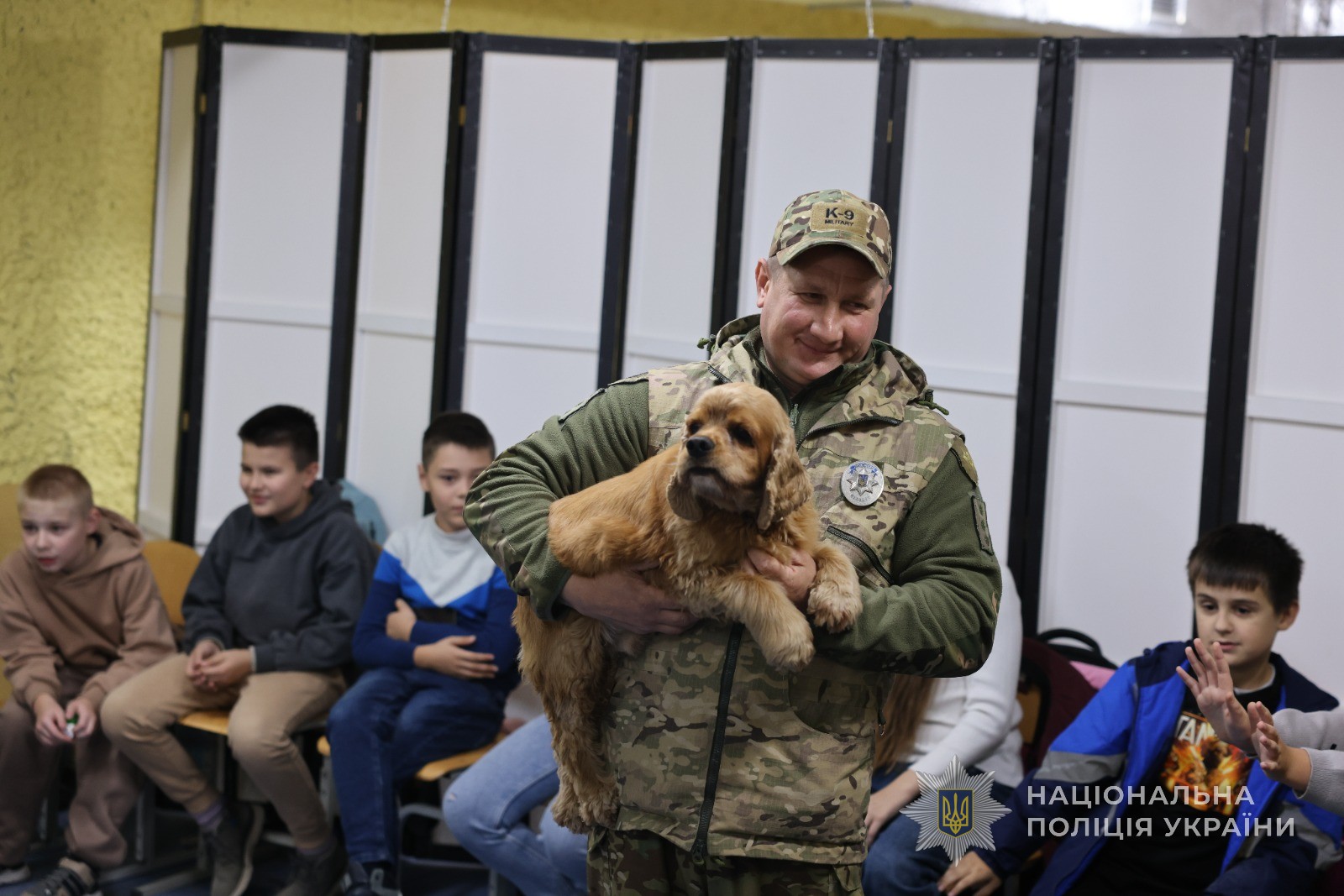 У свою чергу працівники кінологічного центру Головного управління Національної поліції в Сумській області разом зі своїми вірними чотирилапими помічниками пограли з учнями у популярну серед молоді пізнавальну гру «Норм або стрьом». Також вони розповіли та показали присутнім як працюють службові собаки з пошуку вибухових речовин, зброї або наркотичних засобів. Потому діти мали змогу ближче познайомитися з псами та, навіть, взяти участь у їх екіпіруванні для виконання спеціальних завдань. Кожна дитина залюбки фотографувалася з гостями та дізнавалася від поліцейських усе, що її цікавило.