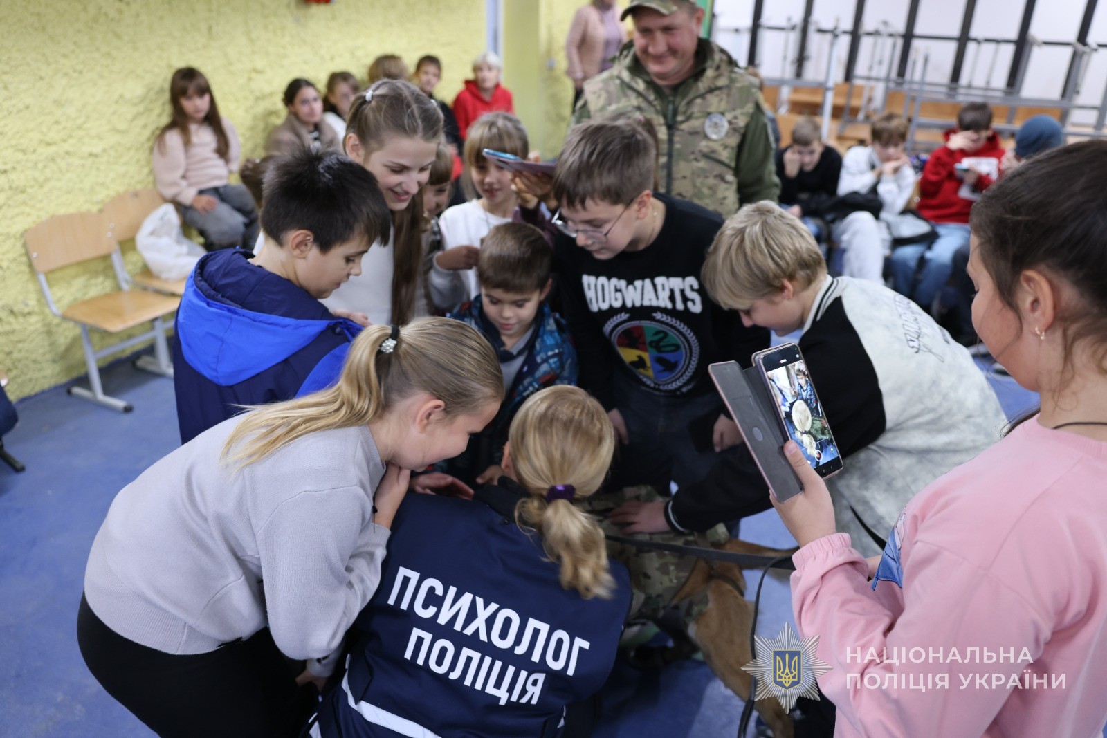 З метою підтримки ментального здоров’я серед дітей та дорослих та підвищення обізнаності про доступні ресурси психологічної підтримки серед працівників педагогічних колективів, які постраждали внаслідок збройної агресії, поліцейські психологи та кінологи завітали до одного з навчальних закладів міста.