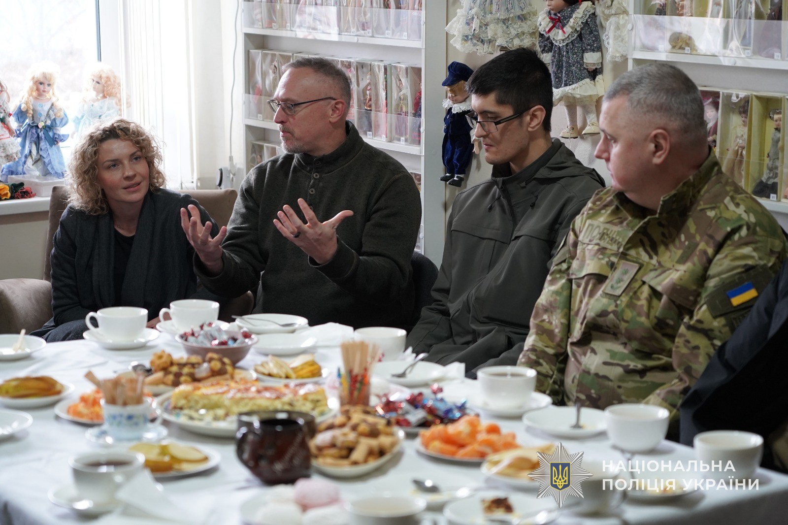 Серед запрошених був доктор філософії Майкл Браун, діючий капелан, колишній військовослужбовець армії США. Вже третій рік він служить в Україні, працюючи з церквами, капеланами та ветеранами, зосереджуючись на темі моральної травми, реабілітації військових та їх відновленні після повернення. Тож, після екскурсії, за спільним столом з чаєм та солодощами, він теж поспілкувався з правоохоронцями, що проходять реабілітацію та дав їм цінні поради і настанови на майбутнє.
